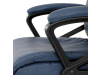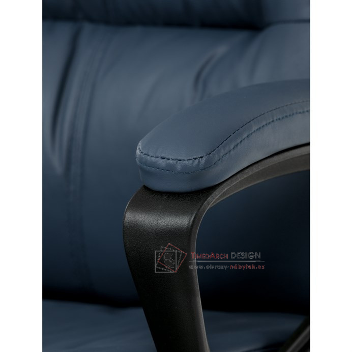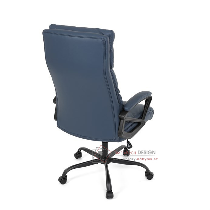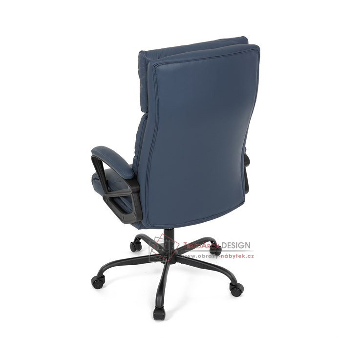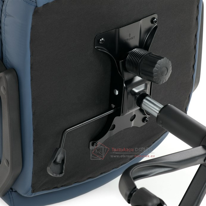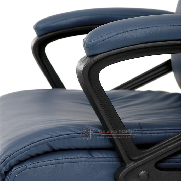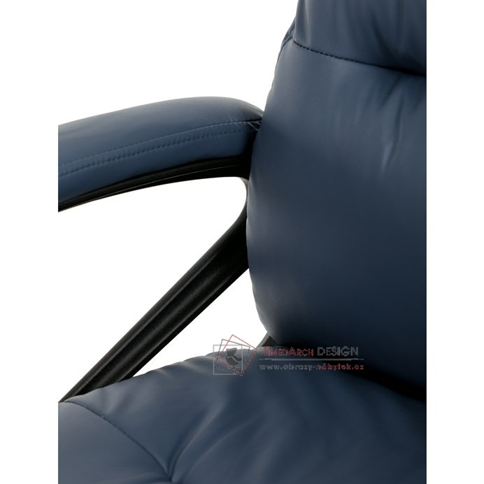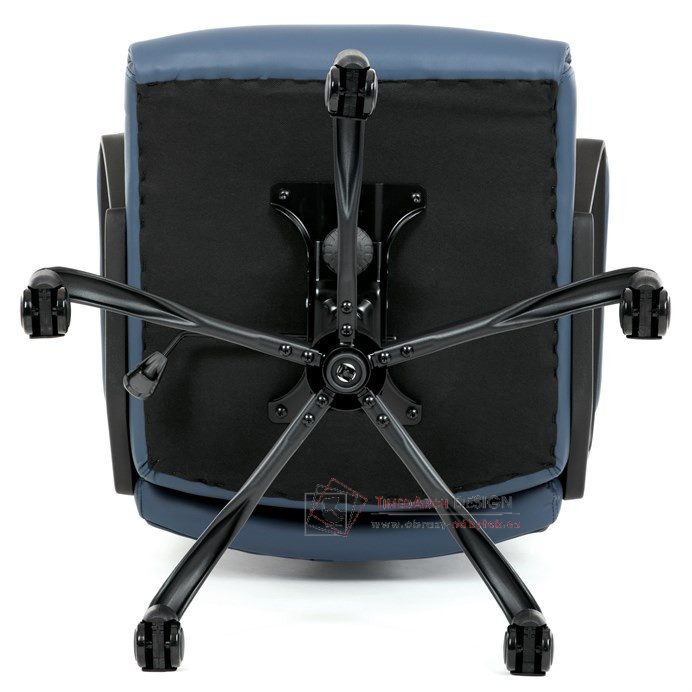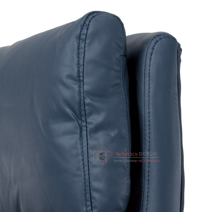 Výplň sedáku tvoří taštičkové pružiny a PUR pěna. Sedák a opěrák židle je očalouněný ekokůží modré barvy.