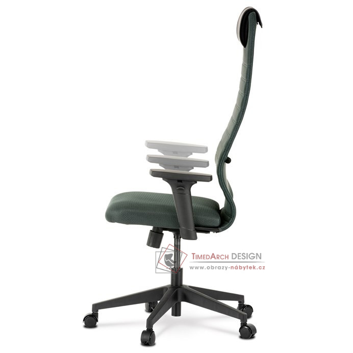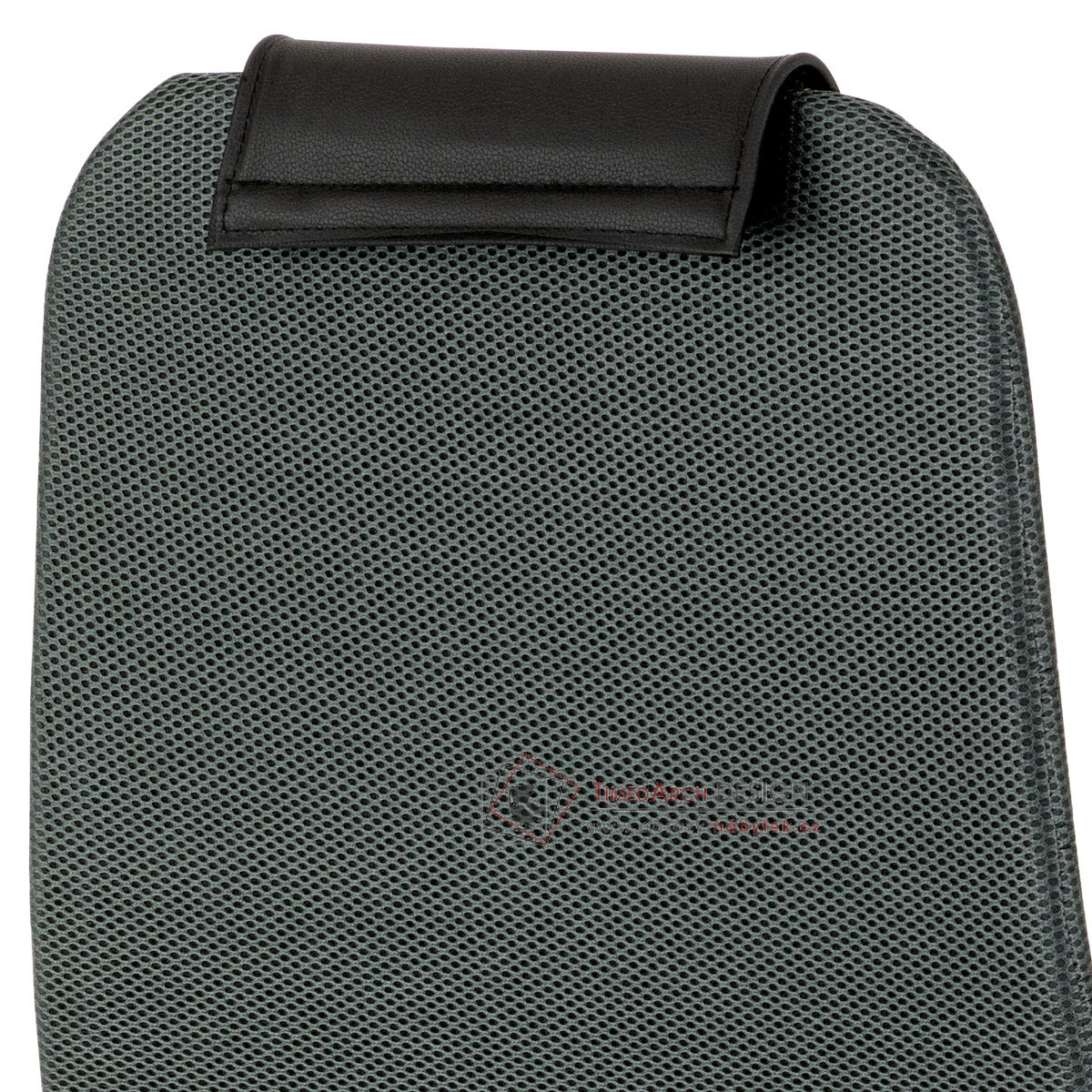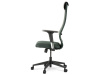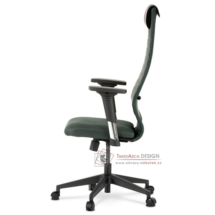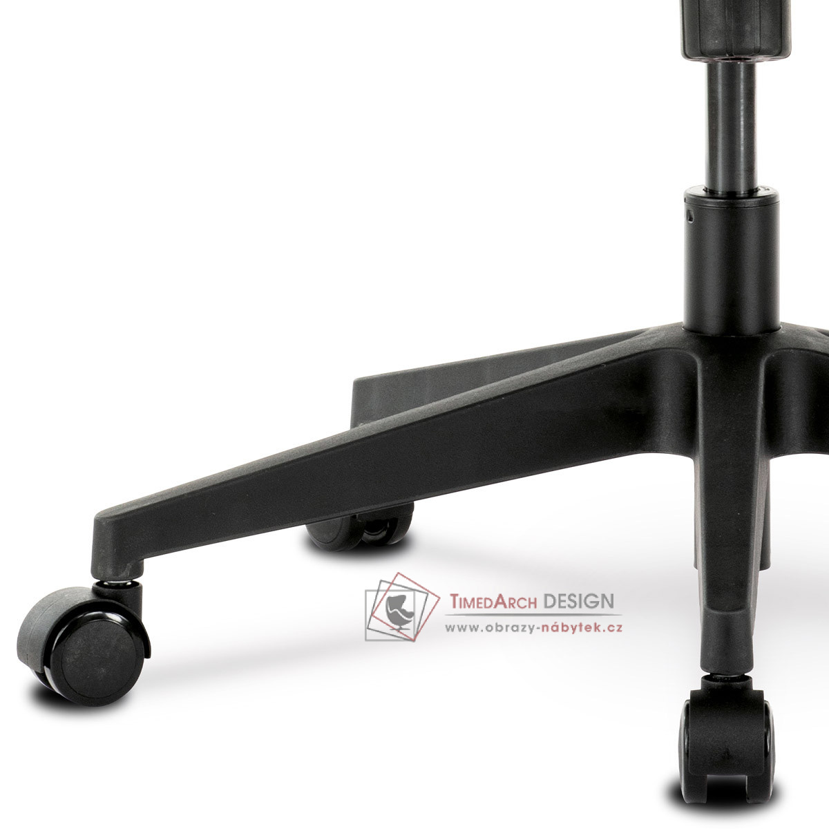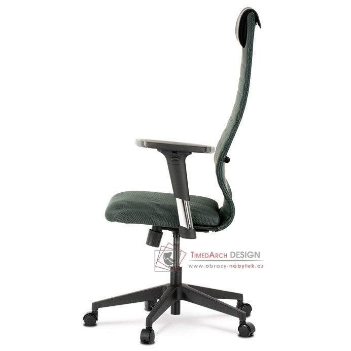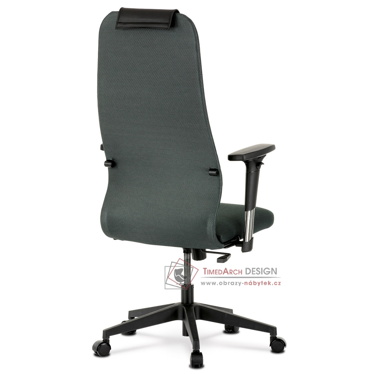 Jedná se o moderní designové křeslo, navržené pro kancelářskou práci s významným zaměřením na maximálním pohodlí a nadstandardní ergonomii sezení. Tou je ergonomický tvar opěráku a sedáku, který přesně odpovídá anatomickému tvaru lidského těla, podporuje a odlehčuje páteř. Dále měkká opěrka hlavy, která poskytuje ideální oporu hlavě, uvolňuje napětí z krku a ramen. Jedinečný tvar přední části sedáku eliminuje mačkání cév nohou při zachování pocitu lehkosti v nich. V neposlední řadě i pevná bederní opěrka pro větší pohodlí a jako bonus možnost nastavení hloubky sedu při montáži. Rám křesla je tvořen z kovového profilu s černým polymerovým povlakem a překližkou. Potah sedáku i opěráku je z odolné tmavě šedé látky MESH, výplň z vysoce kvalitní PU pěny. Na opěráku v tenké vrstvě, aby umožnila tělu „dýchat“. Hlavová opěrka je z černé ekokůže, vyplněná PU pěnou. Na zadní straně opěráku je uchycena pomocí suchého zipu. Židle je vybavena houpacím mechanismem s nastavením protiváhy a aretací v základní poloze. Tuhost protiváhy lze regulovat velkým plastovým šroubem, umístěným pod sedákem. Výška sezení se upravuje páčkou na pravé straně přes kvalitní plynový píst. Masivní černý plastový kříž o průměru 64 cm je osazen černými kolečky vhodnými na koberce. Područky jsou výškově nastavitelné z černého plastu. Opěrka je měkčená a navíc posuvná vpřed / vzad. Šíře područky je 9 cm, delká 25 cm a výška 3 cm. Nosnost židle je 120 kg.