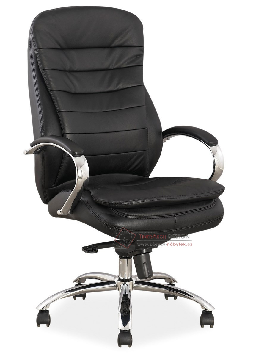 Chromovaná podnož a podučky Čalounění sedáku a opěráku ekokůží černé barvy. Nosnost 120 kg.
