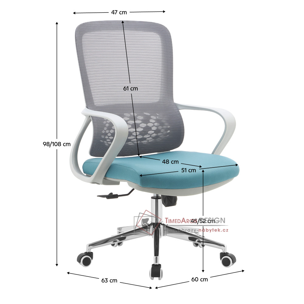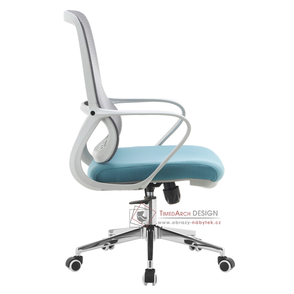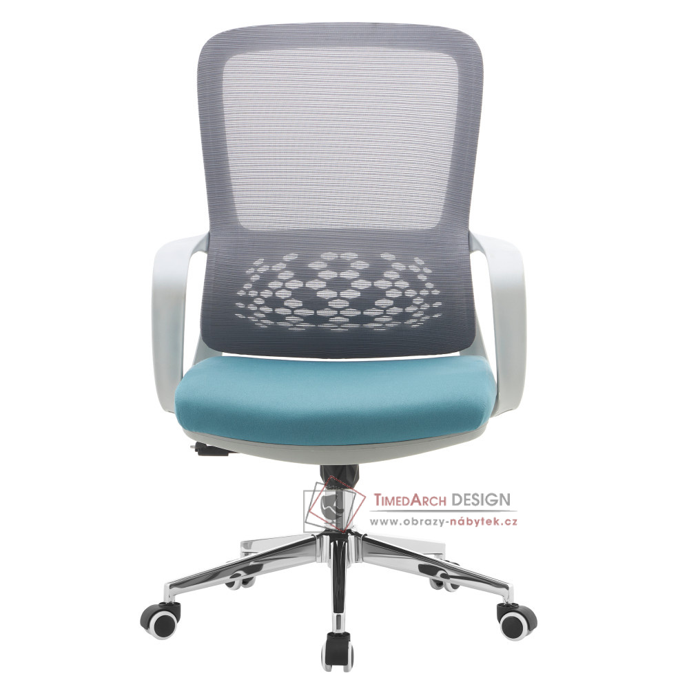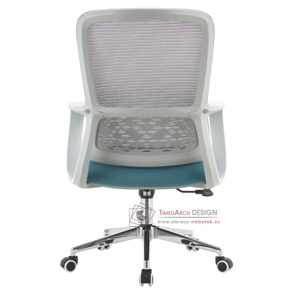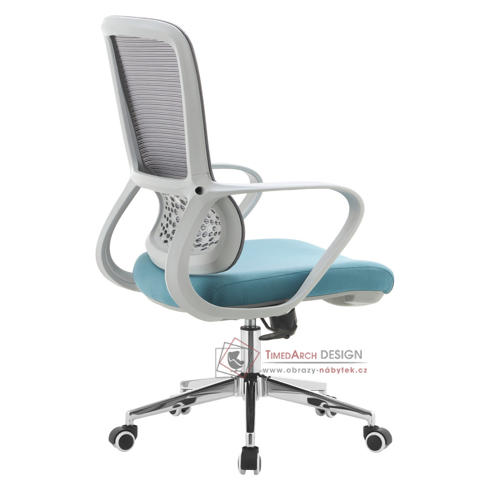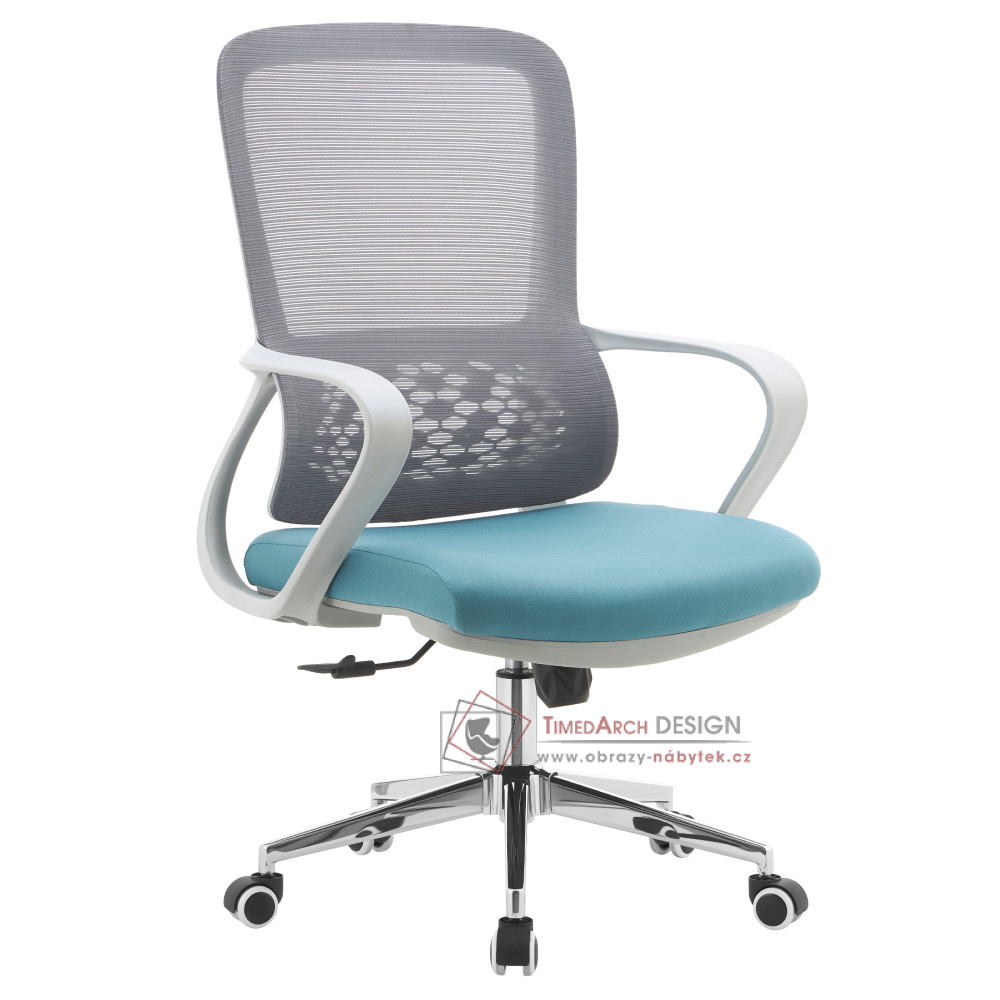 FOSTER typ 2 je ideální volbou pro každého, kdo tráví spoustu času při práci za stolem a nechce dělat kompromisy mezi komfortem a zdravým sezením. Ergonomicky tvarovaná bederní opěrka zajišťuje správné držení těla a odlehčuje páteř, zatímco kombinace šedé síťoviny a modré látky doplněná o chromovou podstavu přináší stylový a elegantní vzhled. Univerzální kolečka jsou navržena tak, aby bez problémů zvládla tvrdé i měkké podlahy. Díky nastavení výšky sedu a funkci houpání si křeslo přizpůsobíte přesně podle svých potřeb. Kancelářská židle FOSTER typ 2 se stane každodenním partnerem pro pohodlné a zdravé sezení.