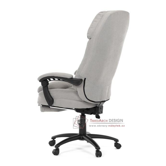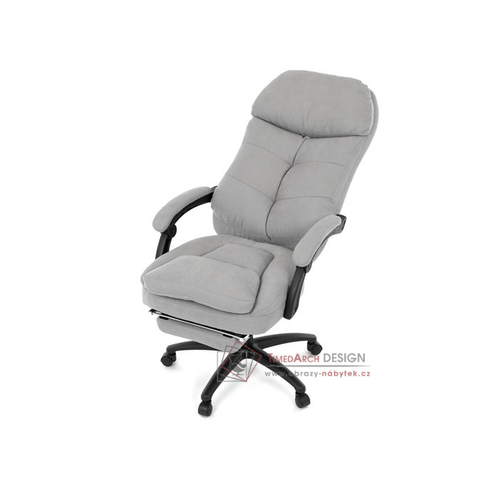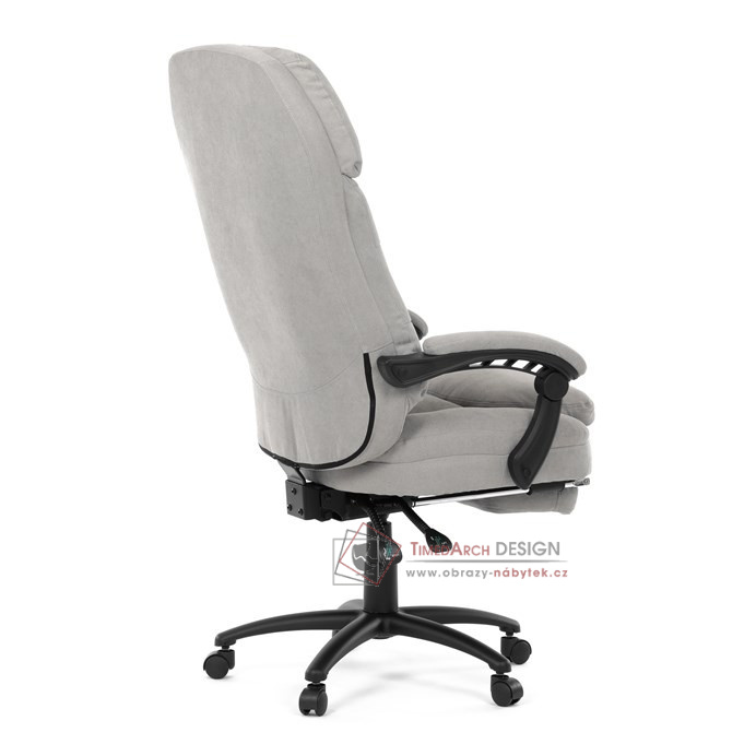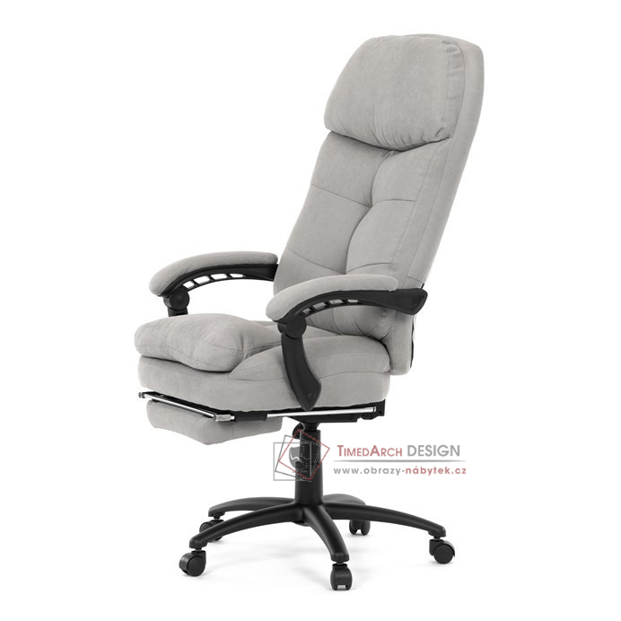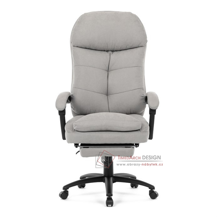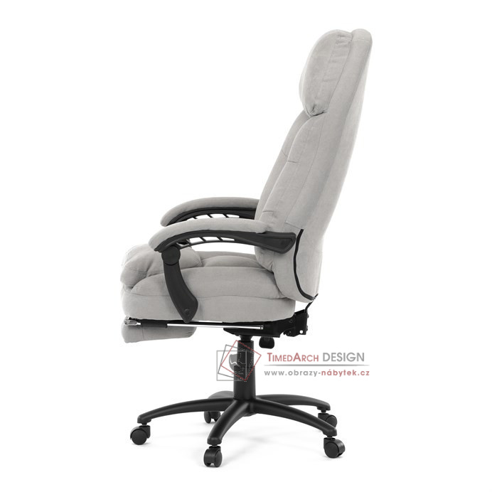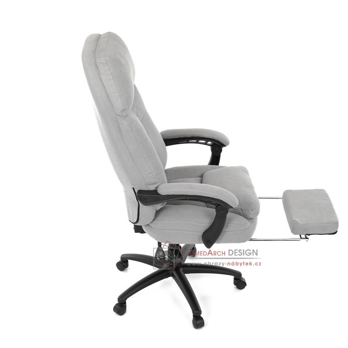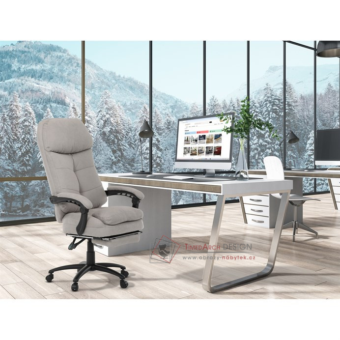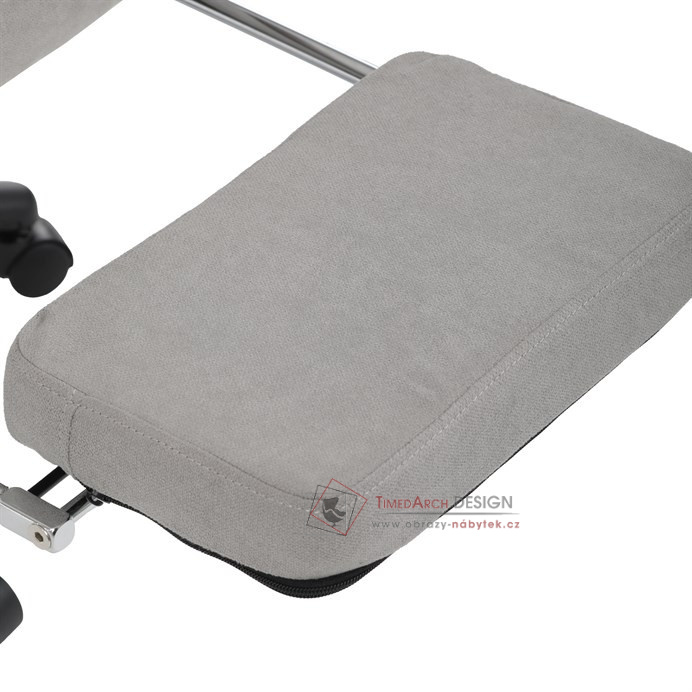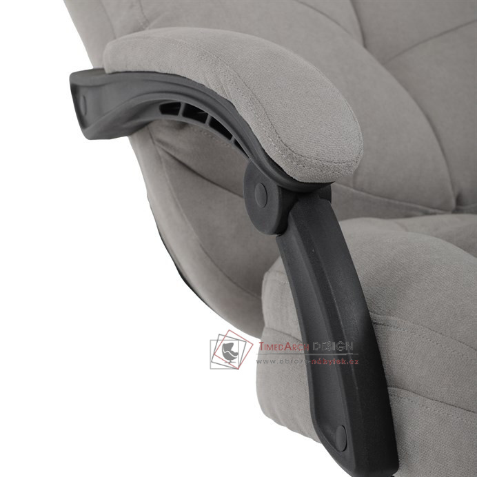 Díky kvalitní látce, měkké výplni z PU pěny a čalouněným područkám poskytuje maximální komfort při sezení. Praktická výsuvná opěrka nohou zvyšuje pohodlí a umožňuje relaxaci během práce. Synchronní mechanika zajišťuje nastavení polohy opěráku zad s možností aretace ve Vámi preferovaných polohách. Stabilní černý kříž s kolečky je nejen funkční, ale také esteticky zapadne do každého pracovního prostředí.
