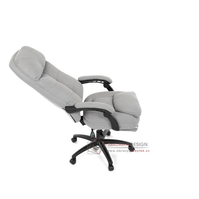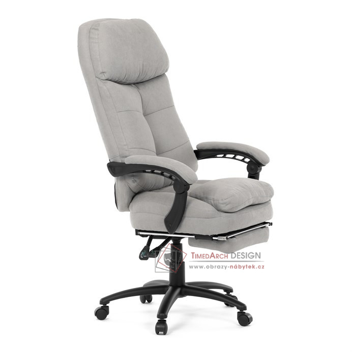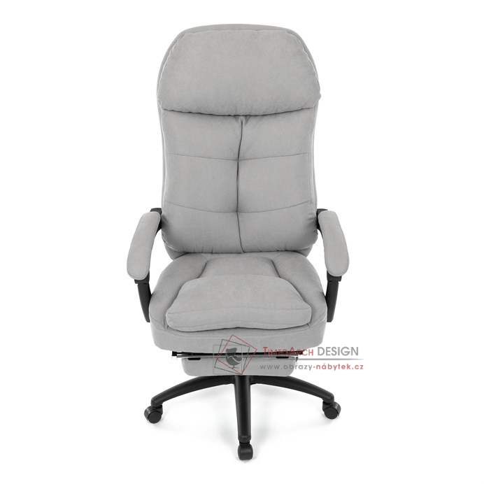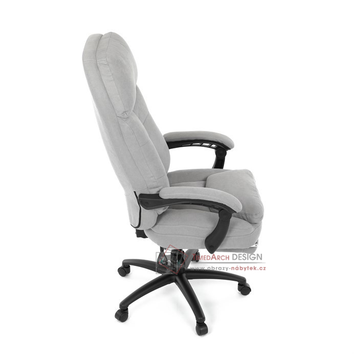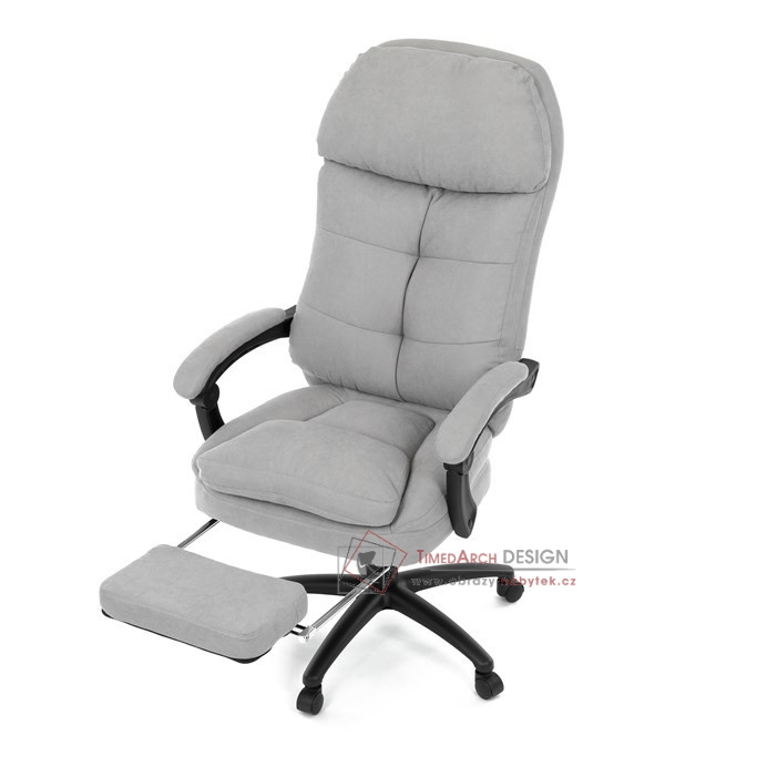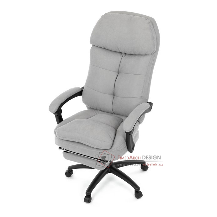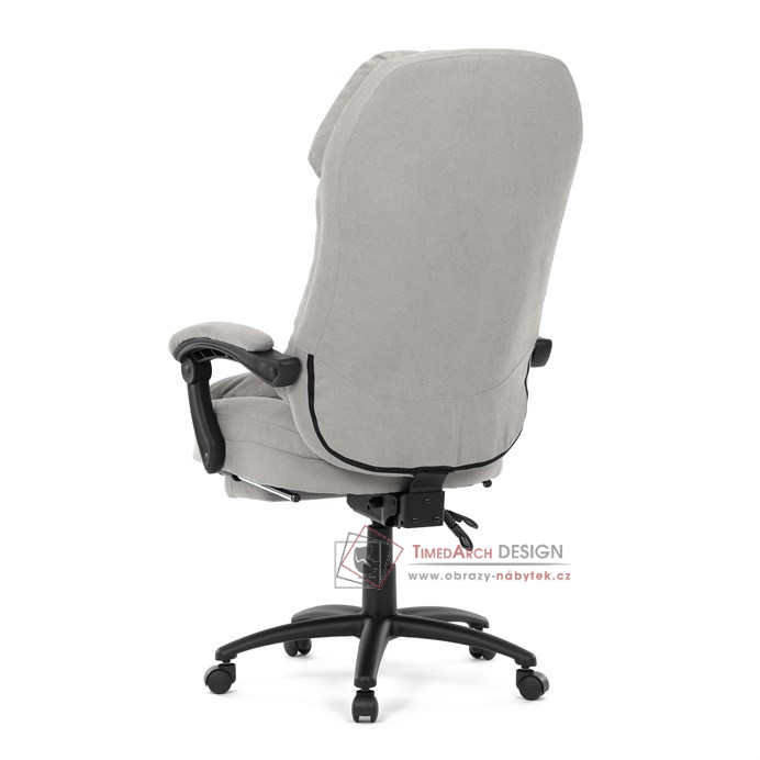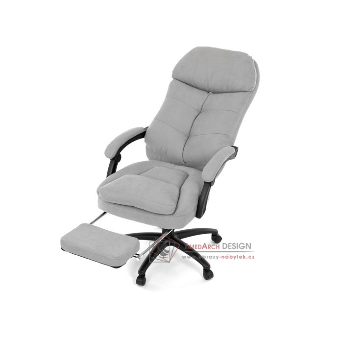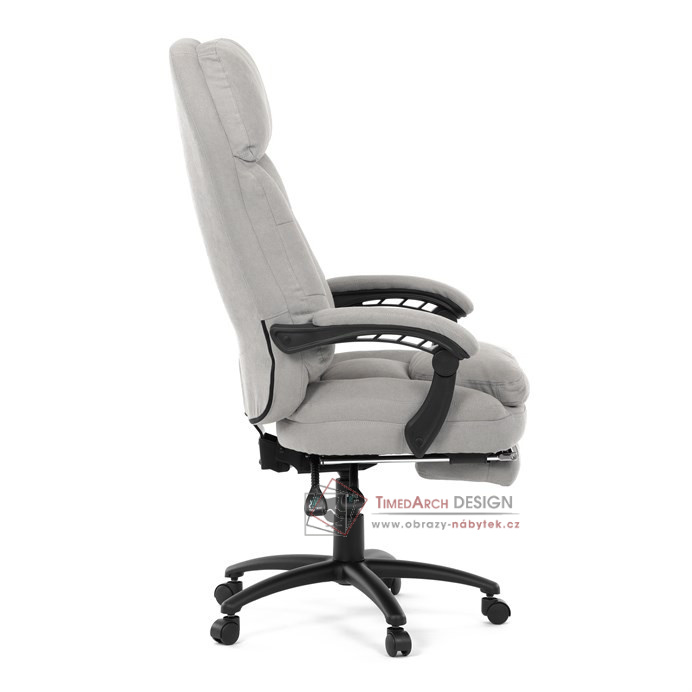 Díky kvalitní látce, měkké výplni z PU pěny a čalouněným područkám poskytuje maximální komfort při sezení. Praktická výsuvná opěrka nohou zvyšuje pohodlí a umožňuje relaxaci během práce. Synchronní mechanika zajišťuje nastavení polohy opěráku zad s možností aretace ve Vámi preferovaných polohách. Stabilní černý kříž s kolečky je nejen funkční, ale také esteticky zapadne do každého pracovního prostředí.