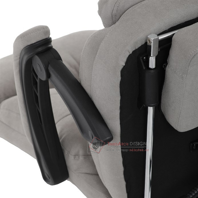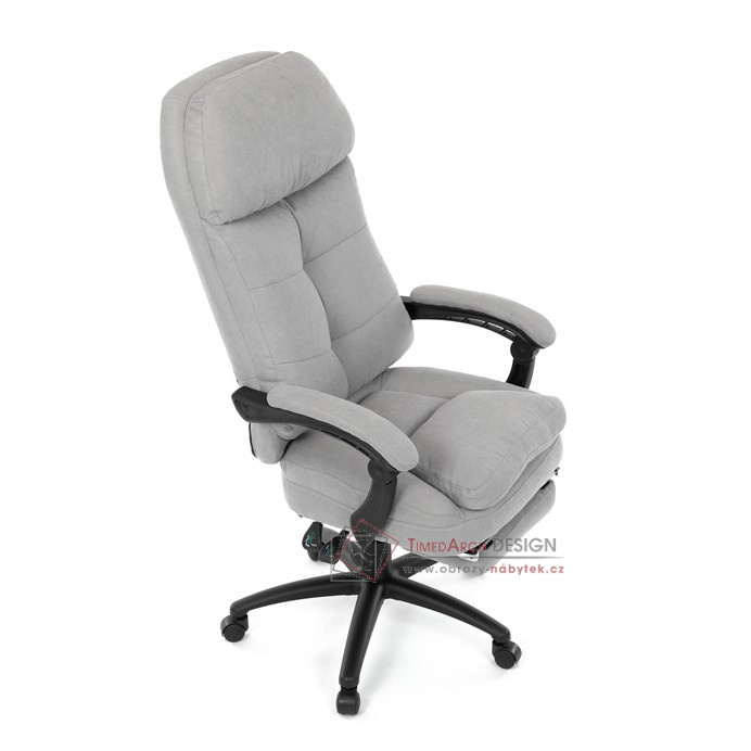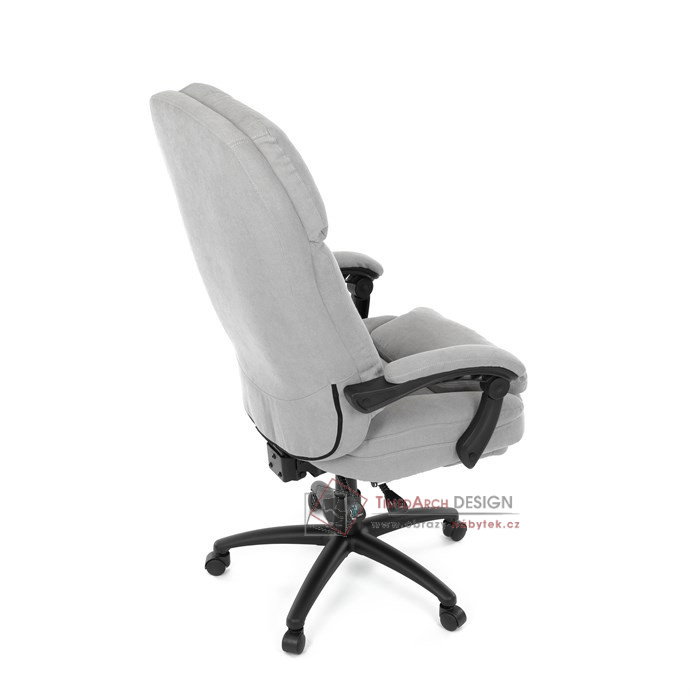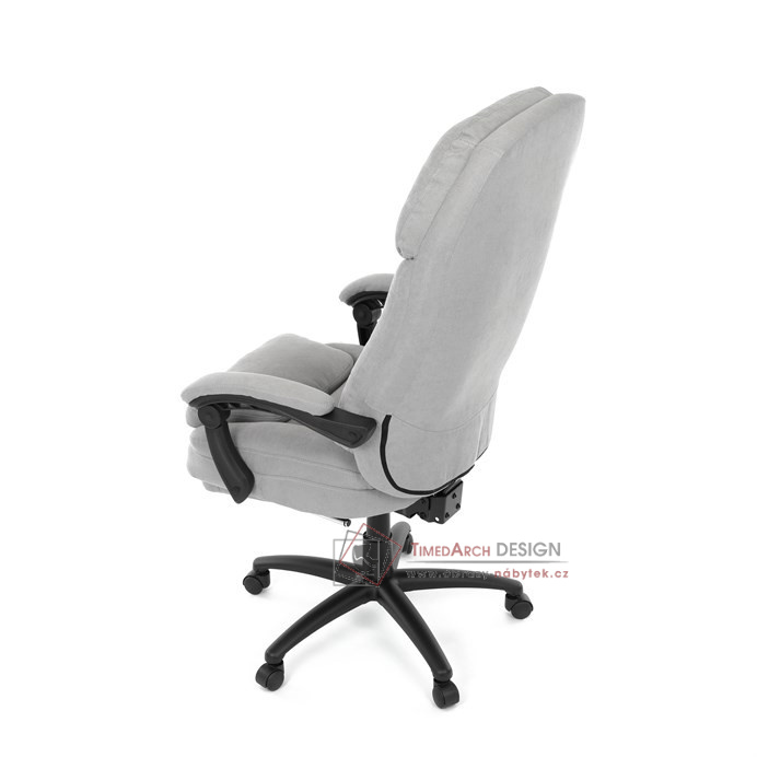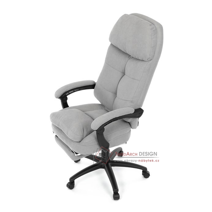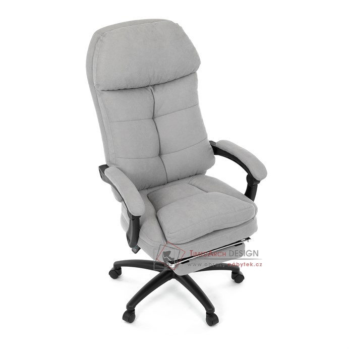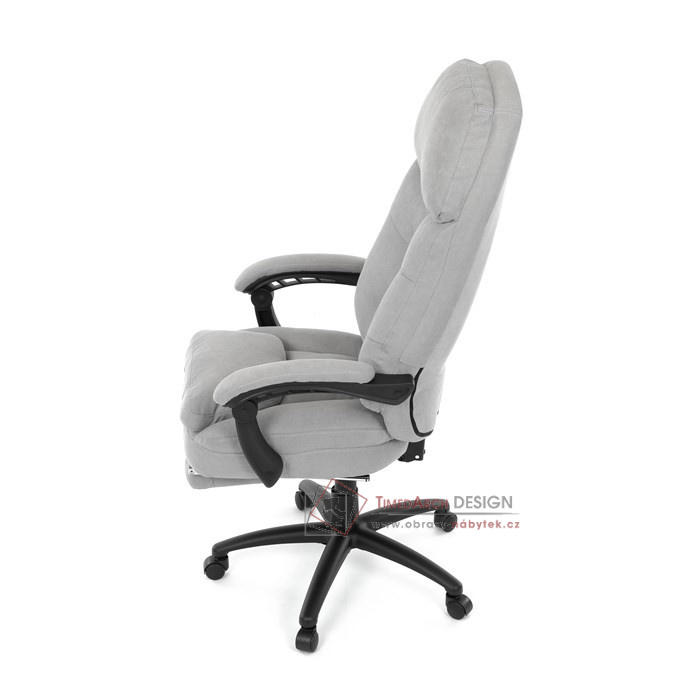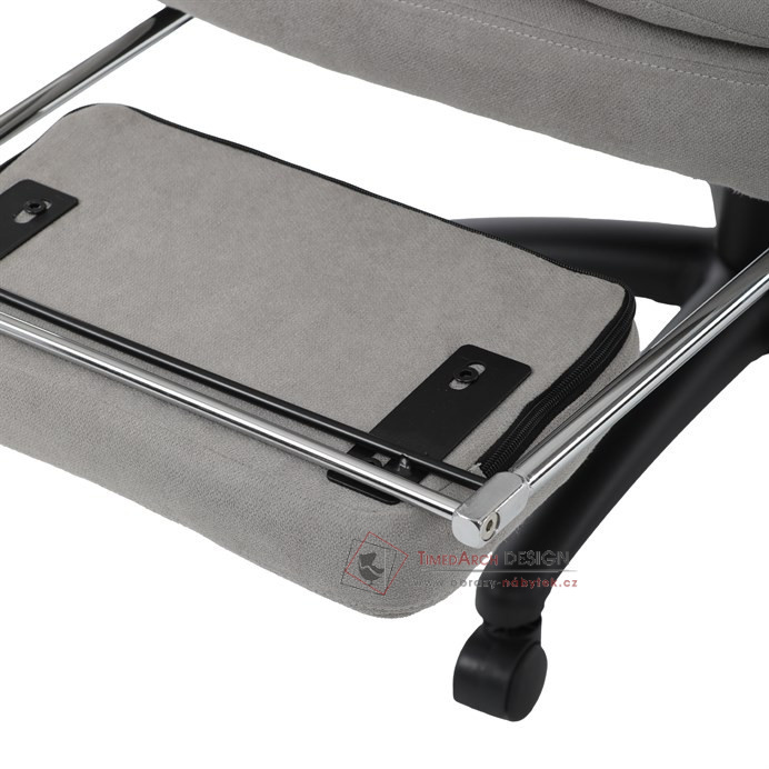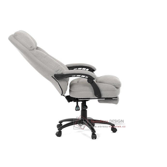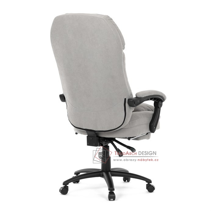Díky kvalitní látce, měkké výplni z PU pěny a čalouněným područkám poskytuje maximální komfort při sezení. Praktická výsuvná opěrka nohou zvyšuje pohodlí a umožňuje relaxaci během práce. Synchronní mechanika zajišťuje nastavení polohy opěráku zad s možností aretace ve Vámi preferovaných polohách. Stabilní černý kříž s kolečky je nejen funkční, ale také esteticky zapadne do každého pracovního prostředí.