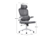 Disponuje mechanikou houpání, sklápěcími opěrkami na ruce a nastavitelnou opěrkou hlavy. Křeslo je čalouněno tmavě šedou síťovinou v kombinaci s bílým plastem. Opěrka zad je v bederní části tvarovaná a byla navržena tak, aby kopírovala vaši páteř a tím napomáhala ke správnému sezení. O stabilitu se postará pětiramenná plastová růžice.
