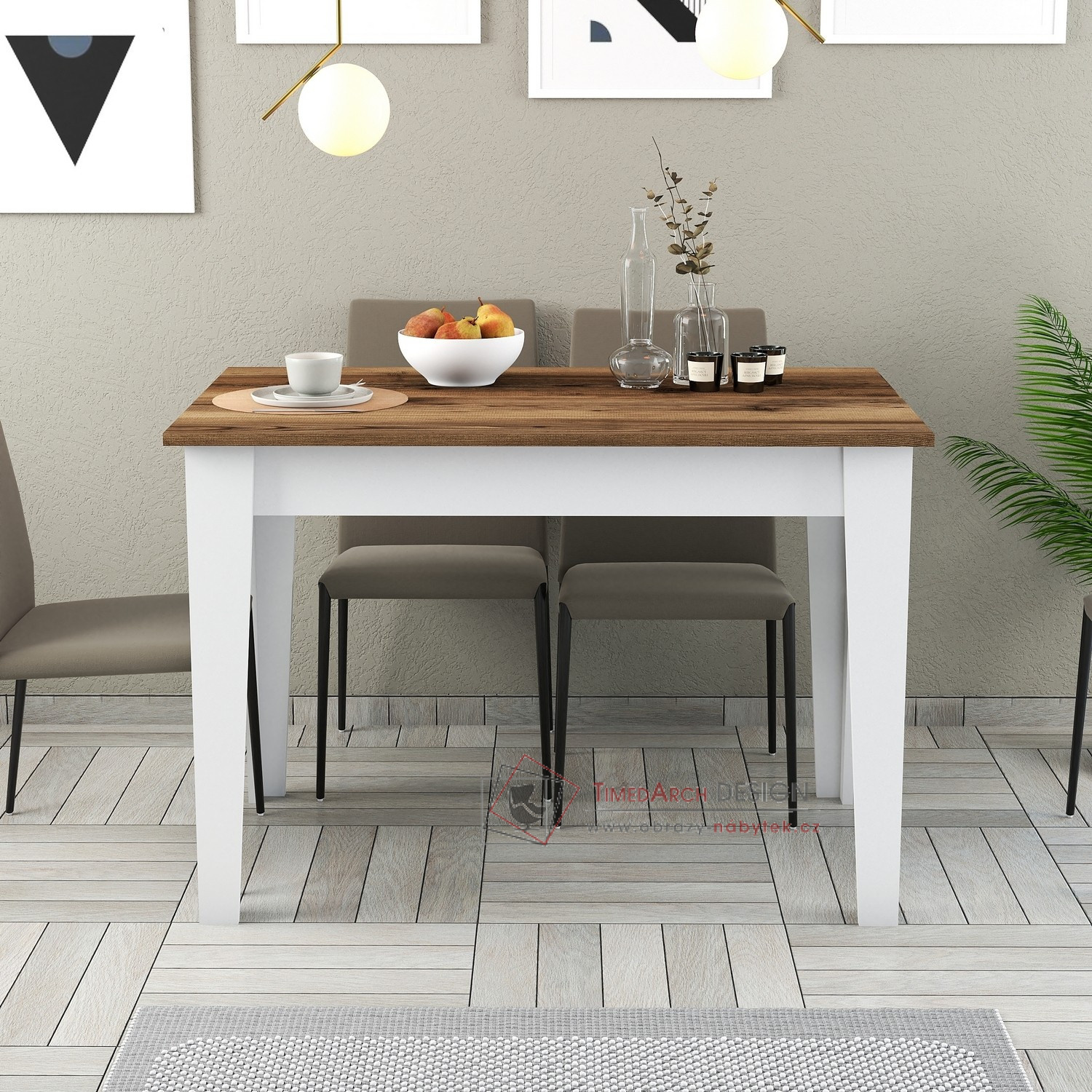 Náš kuchyňský stůl s elegantním a moderním designem je perfektním doplňkem každého moderního domova. Povrchová úprava dodává nádech sofistikovanosti, zatímco barevná kombinace dodává pocit tepla a elegance.