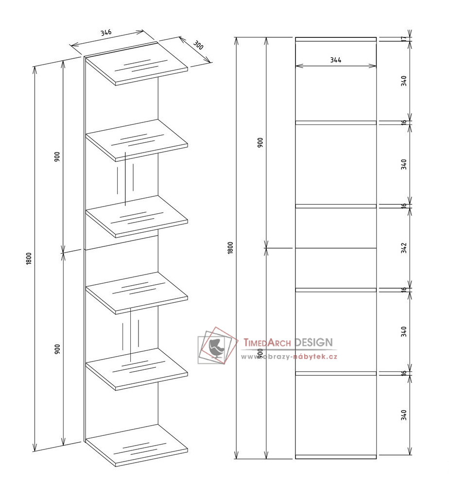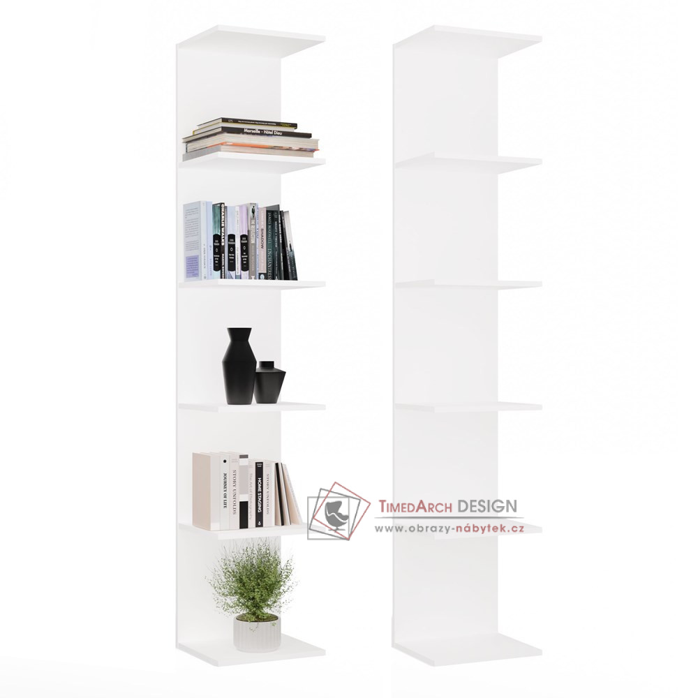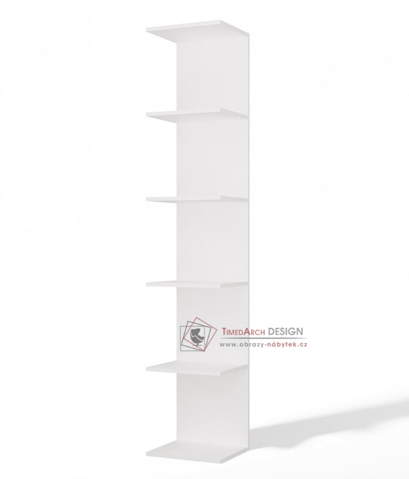 Díky modernímu tvaru a neutrální bílé barvě jej snadno začleníte do každého interiéru. Nabízí šest otevřených polic pro přehledné uložení knih, dekorací i pracovních materiálů.