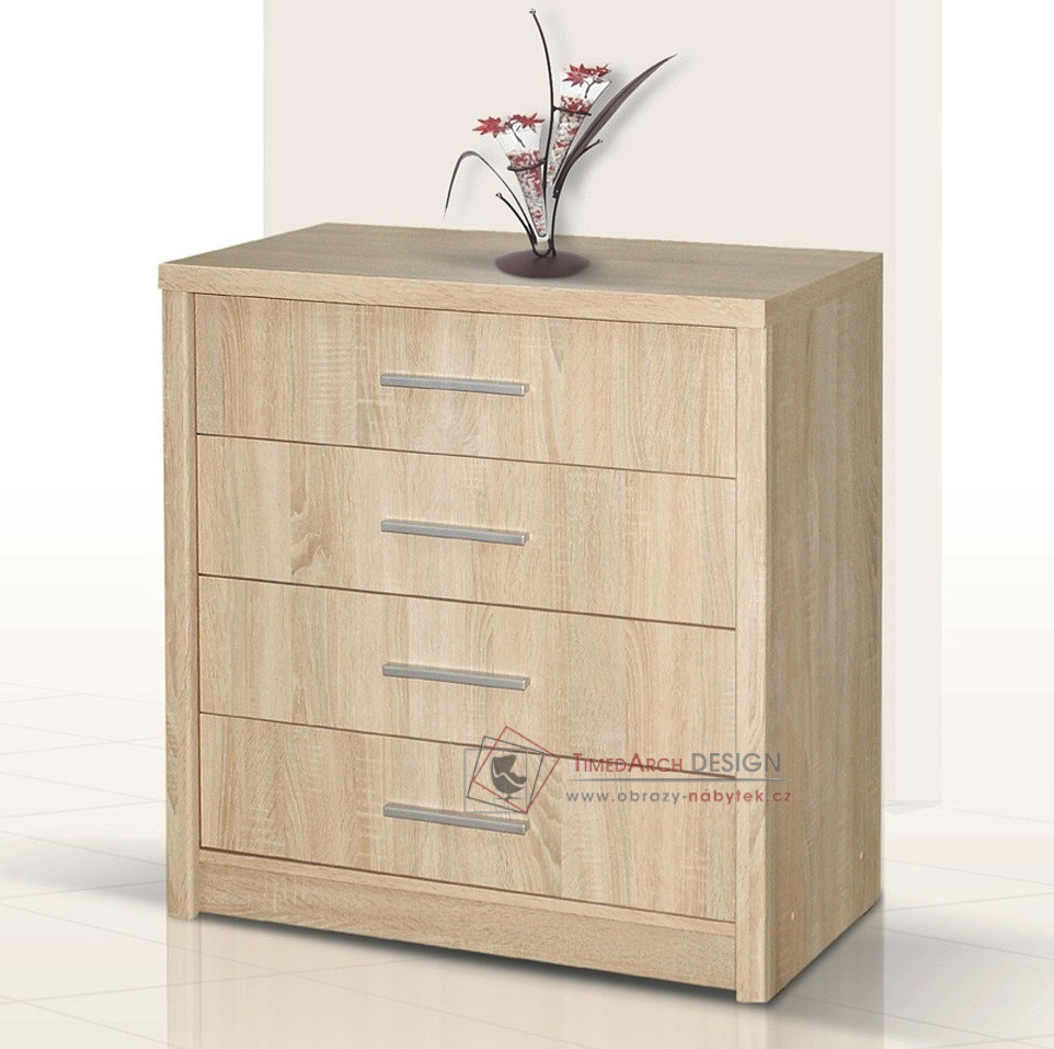Komoda se 4-mi zásuvkami GENEWA 1 je vyrobená z laminované DTD barvy dub sonoma.