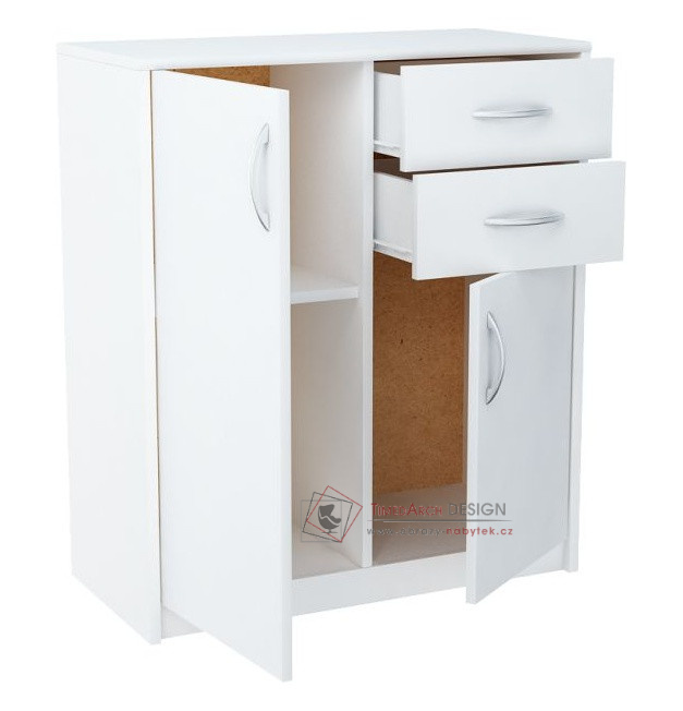 Hrany jsou olepené ABS páskou. Pojezdy v zásuvkách jsou kovové s plastovými kolečky.