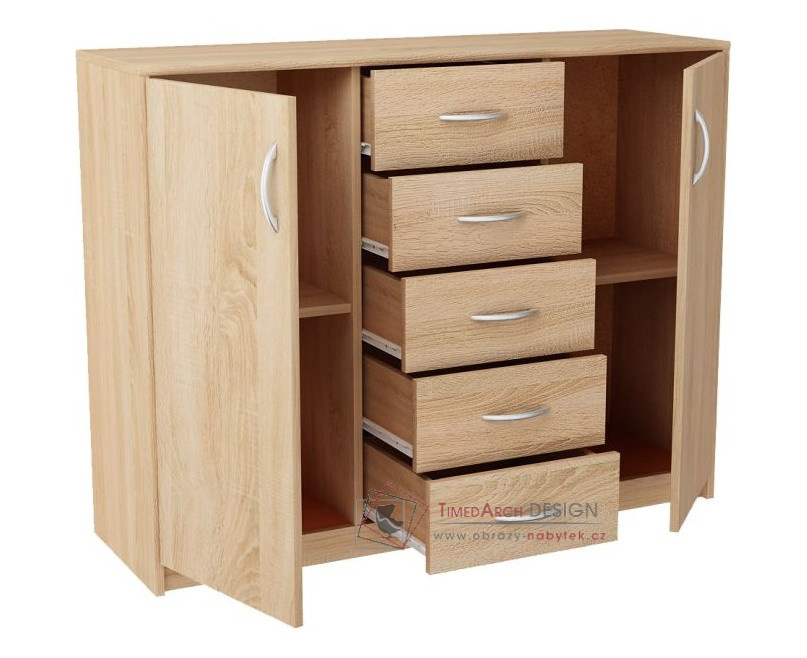 Hrany jsou olepené ABS páskou. Pojezdy v zásuvkách jsou kovové s plastovými kolečky.
