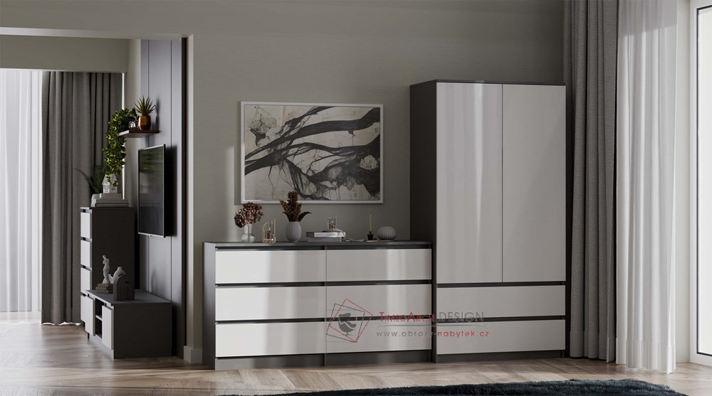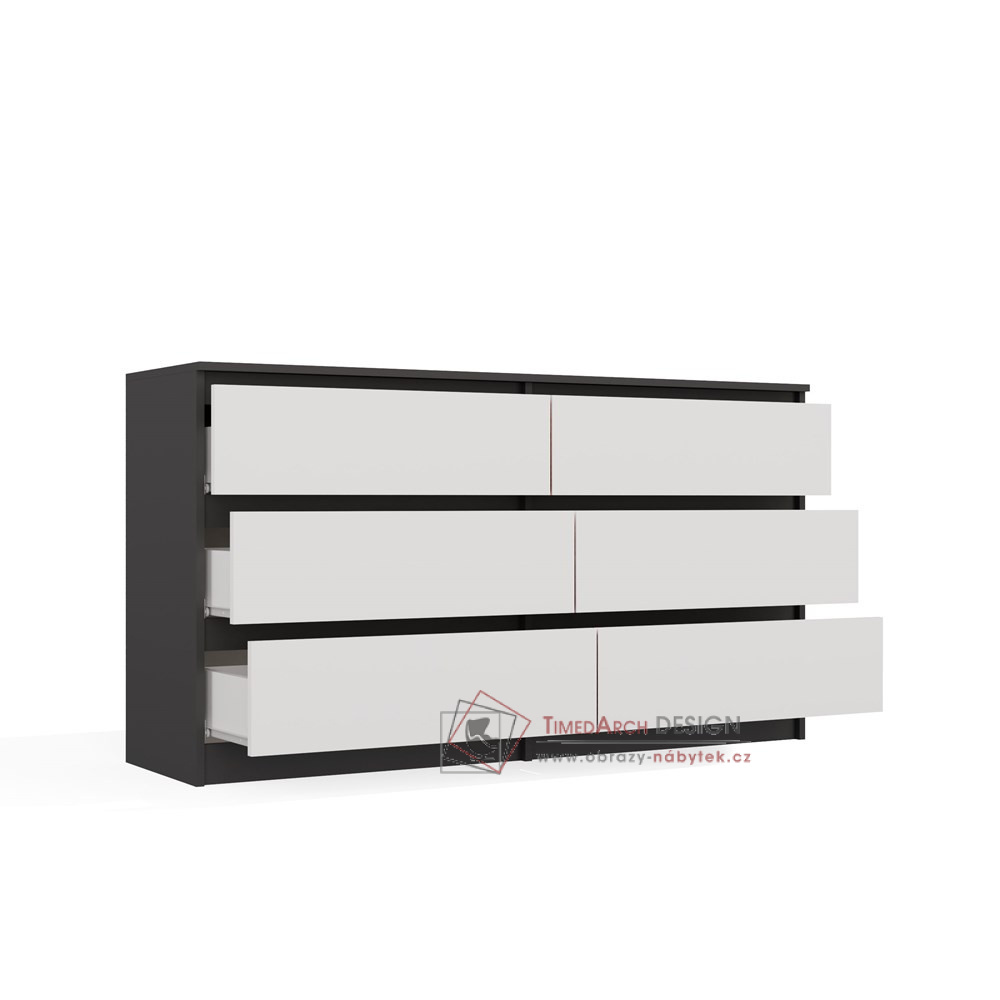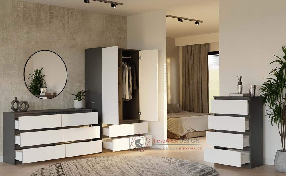 Bezúchytková čela zásuvek zajistí pohodlné používání a dokreslí moderní a útulný charakter vašeho interiéru. Komoda je vyrobena ze snadno udržovatelného lamina, hrany jsou zakončené vysoce odolným ABS materiálem.