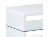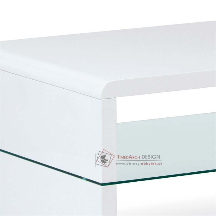 S elegantním bílým lesklým povrchem a praktickou skleněnou policí nabízí styl i funkčnost. Vyroben z kvalitního MDF materiálu, je odolný a snadno se udržuje. Obdélníkový tvar a čisté linie dodávají stolku moderní vzhled, který se hodí do různých interiérů. Tento stolek poskytuje dostatek úložného prostoru pro vaše časopisy, knihy nebo dekorace.