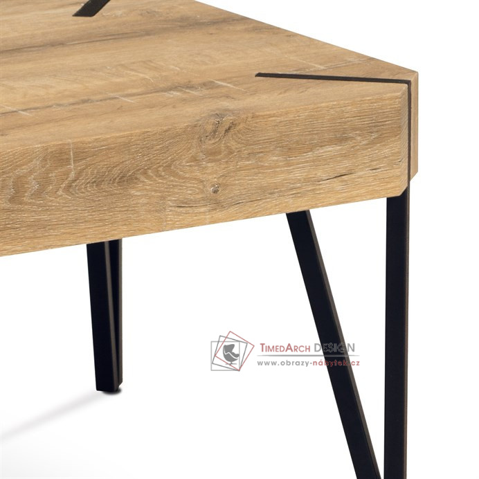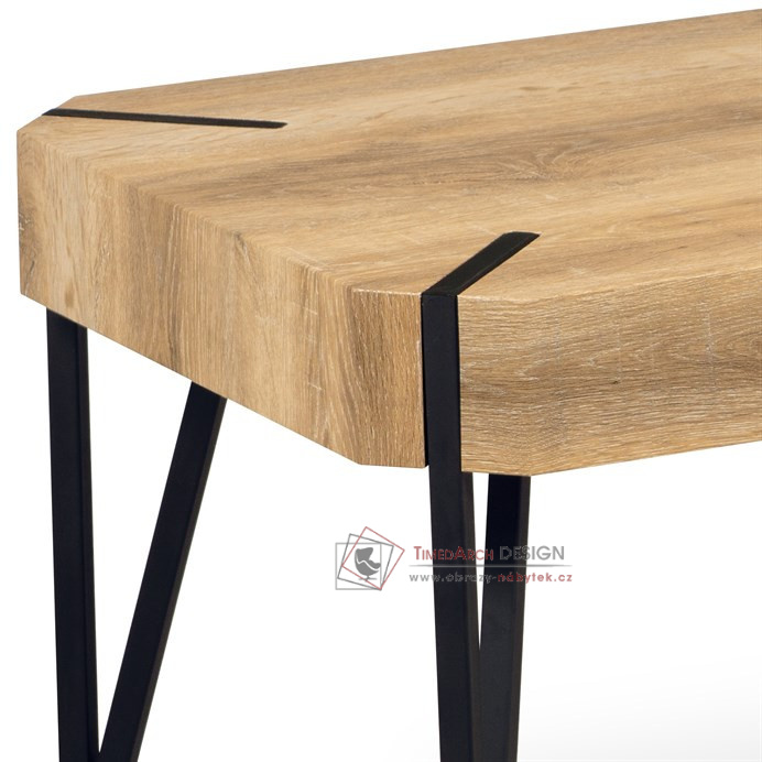 Moderní konferenční stolek z 1,5 cm tlusté MDF desky v dekoru bělený dub a s výškou lubu 10 cm.