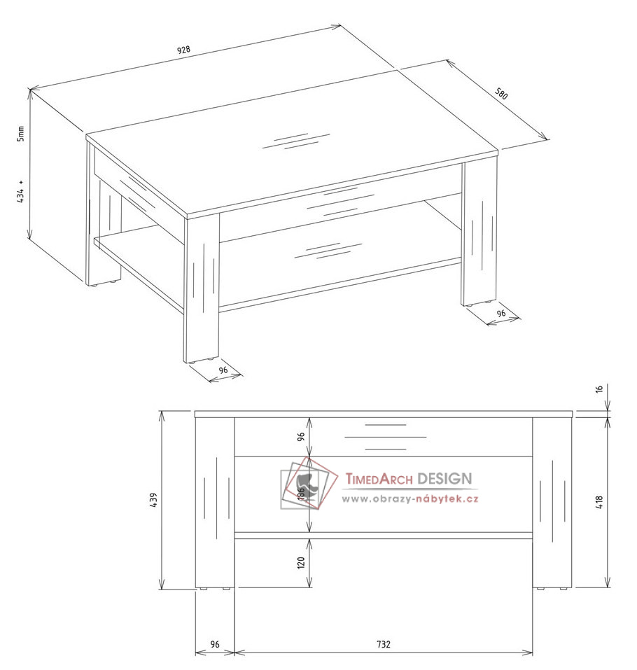 Jeho minimalistický tvar a praktická spodní police z něj dělají ideální volbu pro každodenní pohodlí. Je vyroben z odolného a snadno udržovatelného lamina.