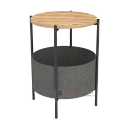Kulatý konferenční stolek BANDE na kovové podnoži černé barvy. Stolní deska je vyrobená z laminované DTD v barevném provedení borovice.