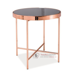 Moderní kulatý konferenční stolek GINA C na kovové podnoži měděné barvy.