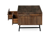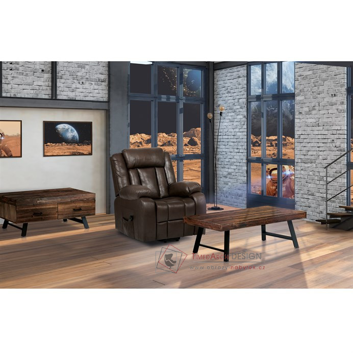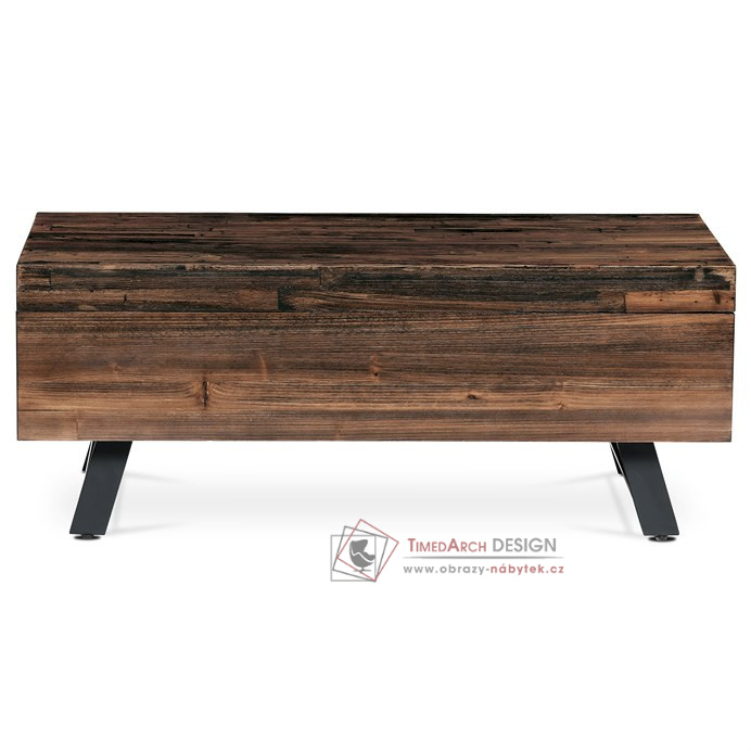 Horní deska zdobená dekorem starého dřeva vyniká sytým hnědým odstínem, který dodá každému obývacímu pokoji, kancelářskému salonku nebo konferenčnímu prostoru nádech nadčasové elegance. Tento stůl není jen výrazným kouskem, ale symbolem stylu skloubeného s praktičností.