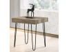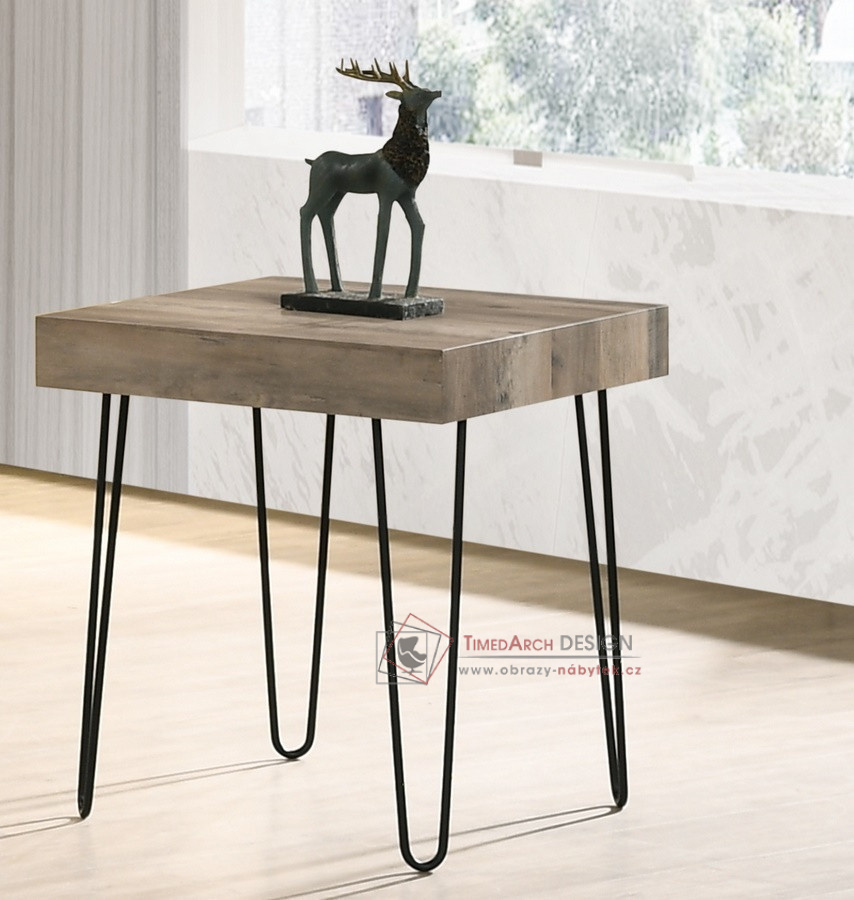 Podnož stolu kovová, černé barvy. Stolní deska je vyrobena z laminované DTD s netradiční 3D fólii s viditelným dekorem dřeva v tmavě hnědém odstínu.