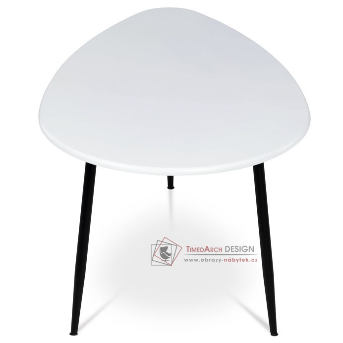 Tento stůl v nílé barvě působí výrazným dojmem a zároveň přináší industriální estetiku. Atypický tvar horní desky v kombinaci s materiálem MDF nabízí odolnost s nádechem uměleckého vkusu. Každý detail na tomto kusu nábytku odráží snahu o styl a funkčnost. Stůl spočívá na kovových nohách ve výrazné černé barvě, které dodávají kontrastu, a vykazuje tak rafinovanost a zároveň slibuje stabilitu. Jedinečná podnož s třemi nohami nejenže dodává stolu atmosféru netradičního designu, ale také zajišťuje dostatek prostoru pro nohy pro maximální pohodlí. Tento boční stolek slibuje více než jen funkčnost; spojuje ohromující vizuální stránku s praktičností a je vyroben tak, aby vydržel a udělal dojem. Bílý odstín desky se bez námahy kombinuje s různými motivy, a staví ho tak do pozice univerzálního doplňku vaší kanceláře nebo domácnosti.
