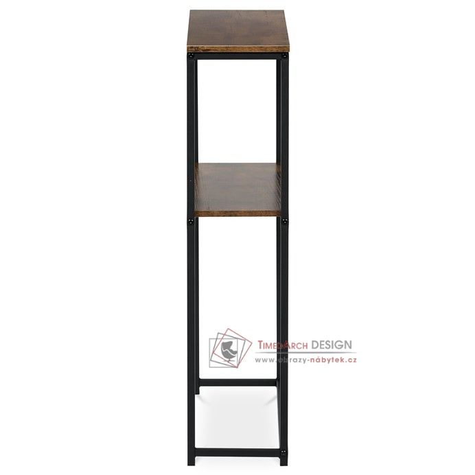 Spojení dekoru starého dřeva s černým kovovým rámem vytváří stylový kontrast, který zaujme na první pohled. Díky praktické polici nabízí stolek dostatek prostoru pro dekorace, knihy nebo drobnosti. Jeho kompaktní rozměry umožňují snadné umístění i v menších prostorech, například v předsíni, obývacím pokoji nebo pracovně. Tento stolek kombinuje funkčnost s designem, a proto se stane oblíbeným prvkem ve vaší domácnosti.