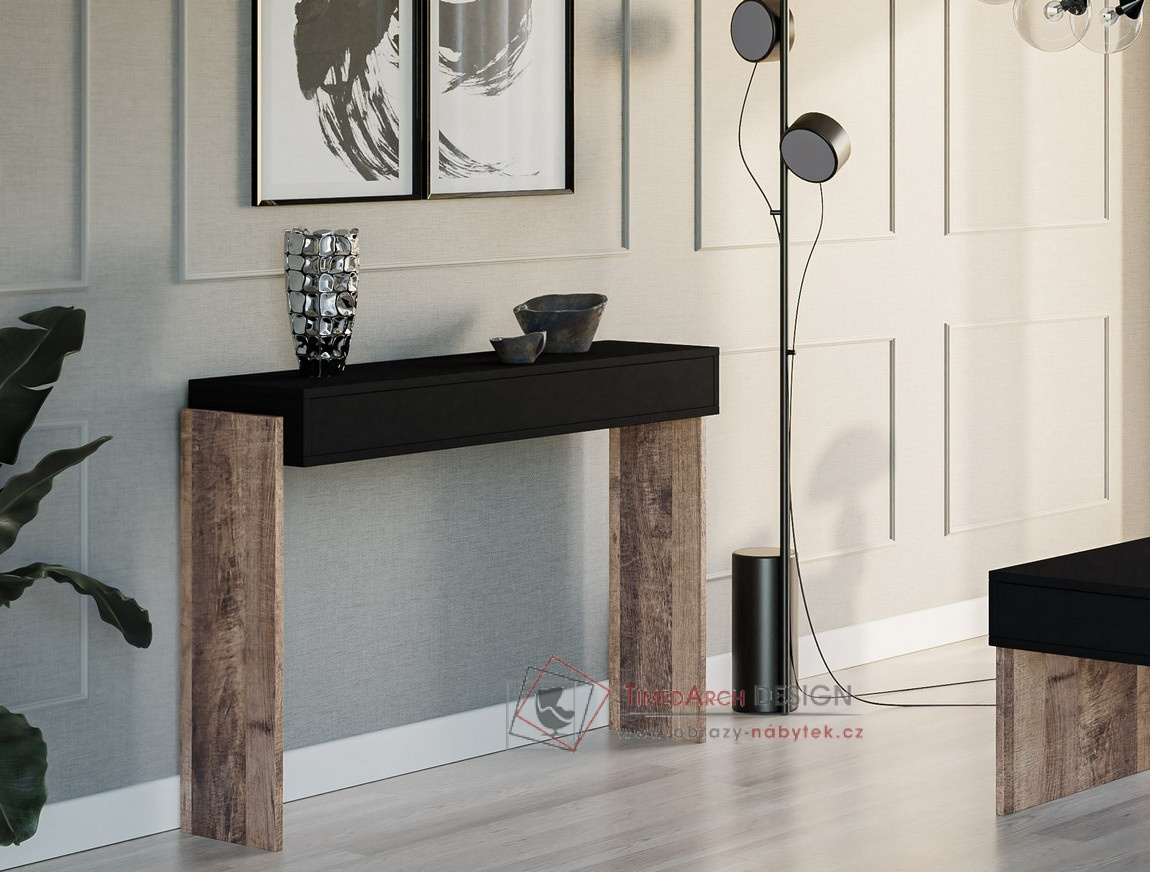 Konzolový stolek ZUBIA je vyrobený z laminované DTD v barevném provedení dub colonial grande / černá.