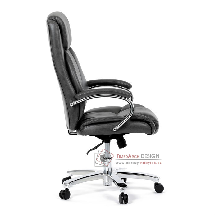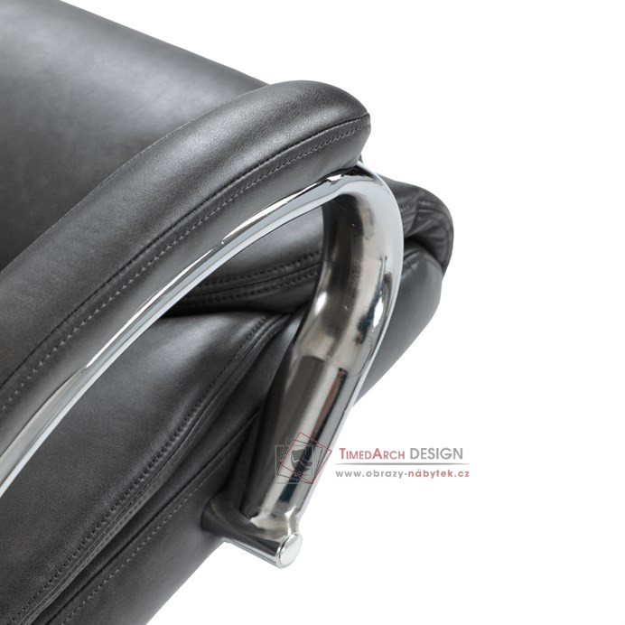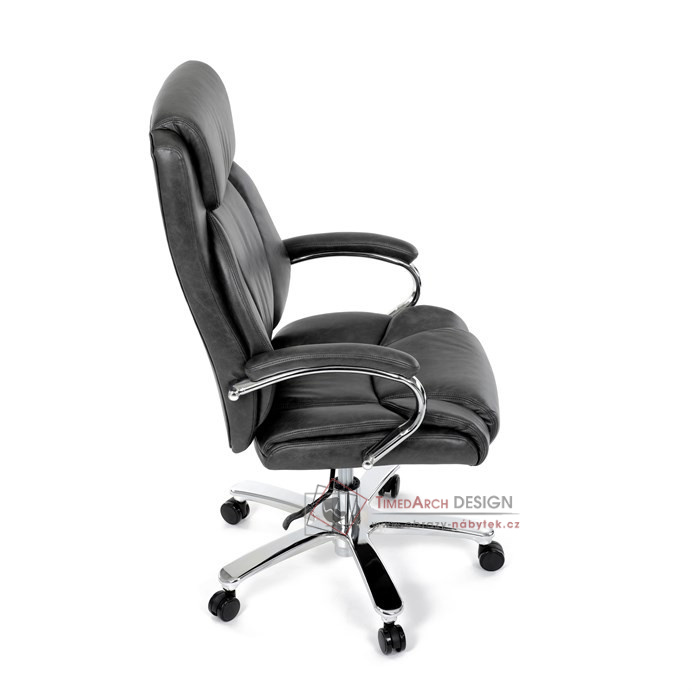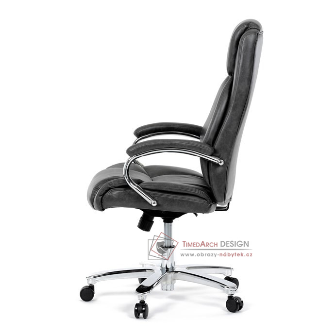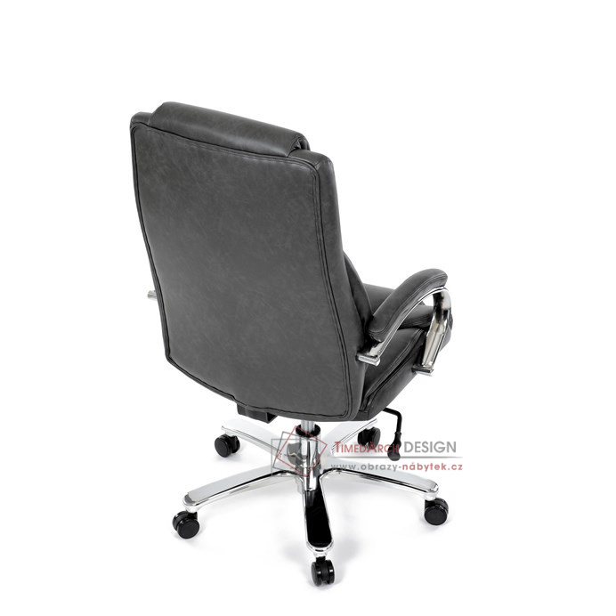 Čalounění z hladké ekokůže je nejen estetické, ale také snadno udržovatelné. Křeslo je vybaveno houpacím mechanismem a nastavitelnou výškou pro maximální pohodlí při práci. Stabilní kovový kříž s kolečky na tvrdé povrchy zaručuje dlouhou životnost a snadnou mobilitu. Čalouněné pevné područky poskytují extra oporu během sezení. Perfektní kombinace funkčnosti a moderního designu.
