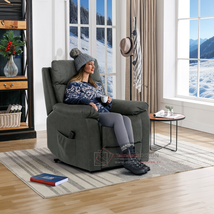 Křeslo je vybaveno elektrickým kabelovým ovládáním, které zajišťuje plynulé nastavení polohy pro maximální komfort. Díky nastavitelnému přítlaku bederní opěrky a polohovací opěrce hlavy je ideální volbou pro odpočinek po náročném dni. Vzhledem k funkci zvedání je toto křeslo ideální volbou pro seniory. Elektromotor zvedá celé křeslo nahoru pro snadné vstávání, aniž byste zatěžovali záda a kolena. Pohodlí zvyšují měkké područky a kvalitní výplň z PU pěny. Skvěle se hodí do obývacího pokoje, kde se stane nejen funkčním, ale i estetickým doplňkem.
