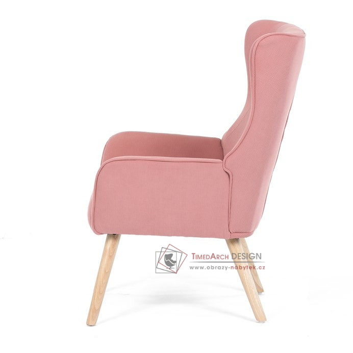 S manšestrovým potahem v jemném růžovém odstínu přináší do vašeho interiéru nádech luxusu a pohodlí. Robustní rám z masivního dřeva zajišťuje stabilitu, zatímco přírodní nohy dodávají kontrastní teplý tón, který harmonizuje prostor. Ideální pro obchody hledající něco mimořádného i pro soukromé zákazníky, kteří chtějí svůj domov vylepšit kvalitním nábytkem.