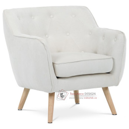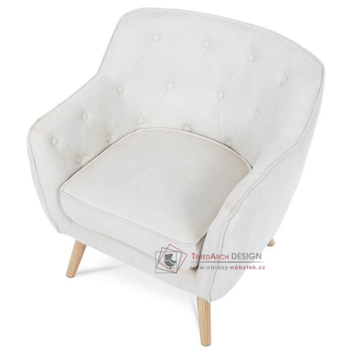 Křeslo je vyrobeno z bílé hladké látky, která dodává tomuto kousku nábytku vzdušnost a eleganci. Jeho přírodní dřevěné nohy přidávají skandinávský nádech a příjemnou atmosféru do Vašeho interiéru. Křeslo poskytuje toto dostatečně prostorné a pohodlné sezení, které vám zaručeně přinese relaxaci a odpočinek. Výška sedu 45 cm a bohatá výplň z PU pěny je ideální pro pohodlné sezení. Kromě svého elegantního a moderního designu se toto křeslo vyznačuje také svou vysokou kvalitou a pevností a to díky nosností až 130 kg.
