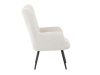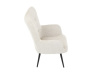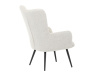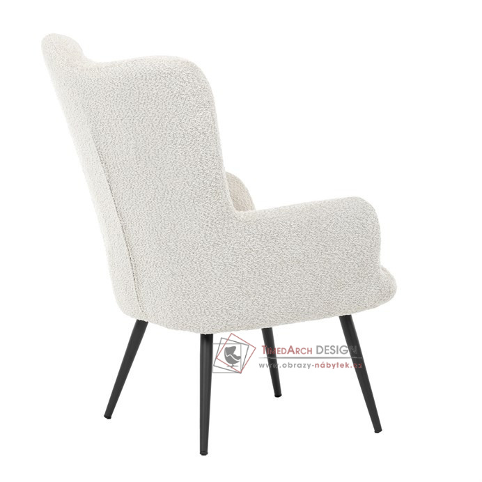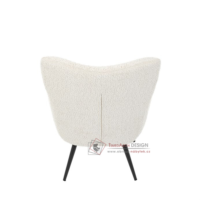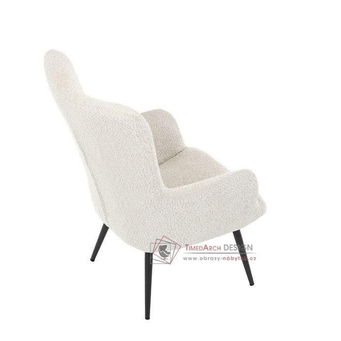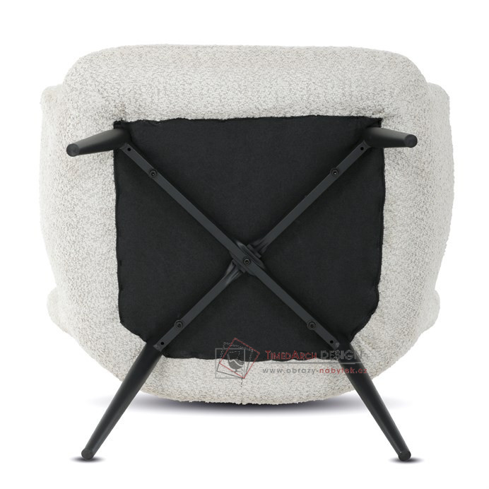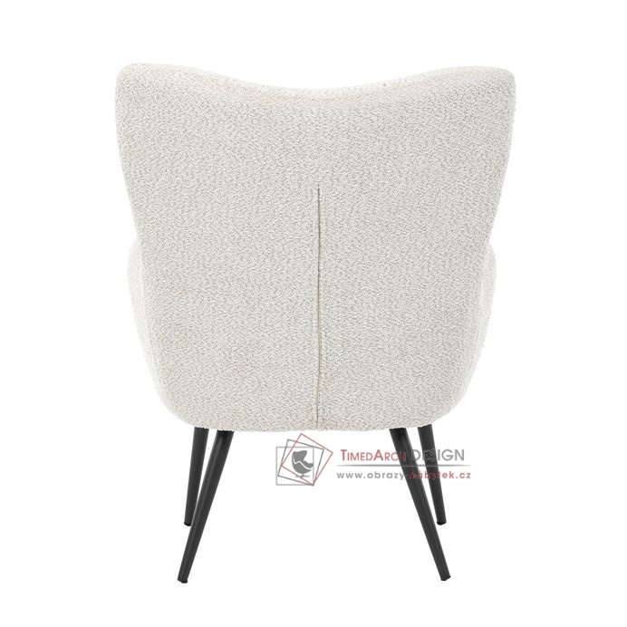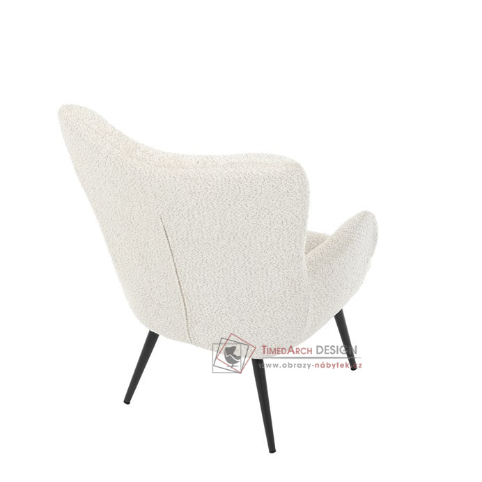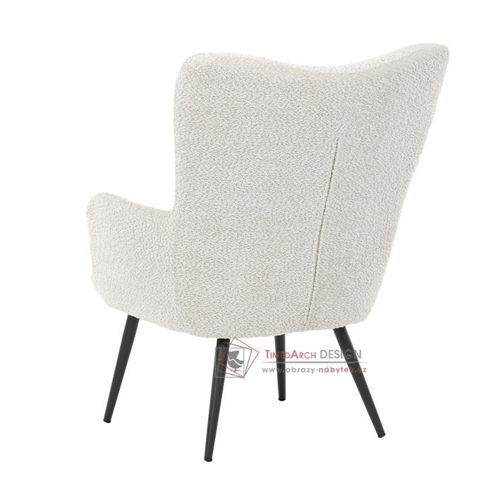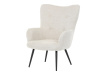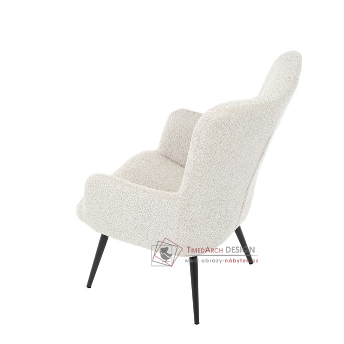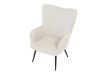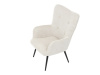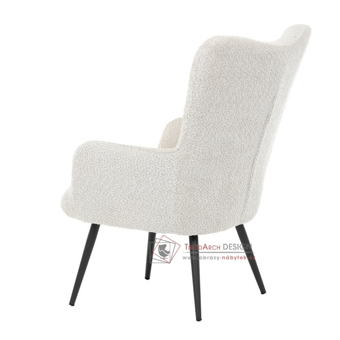 Béžové čalounění z látky Bouclé působí jemně a moderně, zatímco ergonomicky tvarované područky a opěradlo s jemnými knoflíky zajišťují maximální komfort. Stabilní kovové nohy s černým povrchem dodávají křeslu industriální nádech a zajišťují pevnost i při každodenním používání. Toto křeslo je ideální pro chvíle relaxace s knihou nebo při posezení s přáteli. Díky svému jednoduchému designu snadno zapadne do každého interiéru.