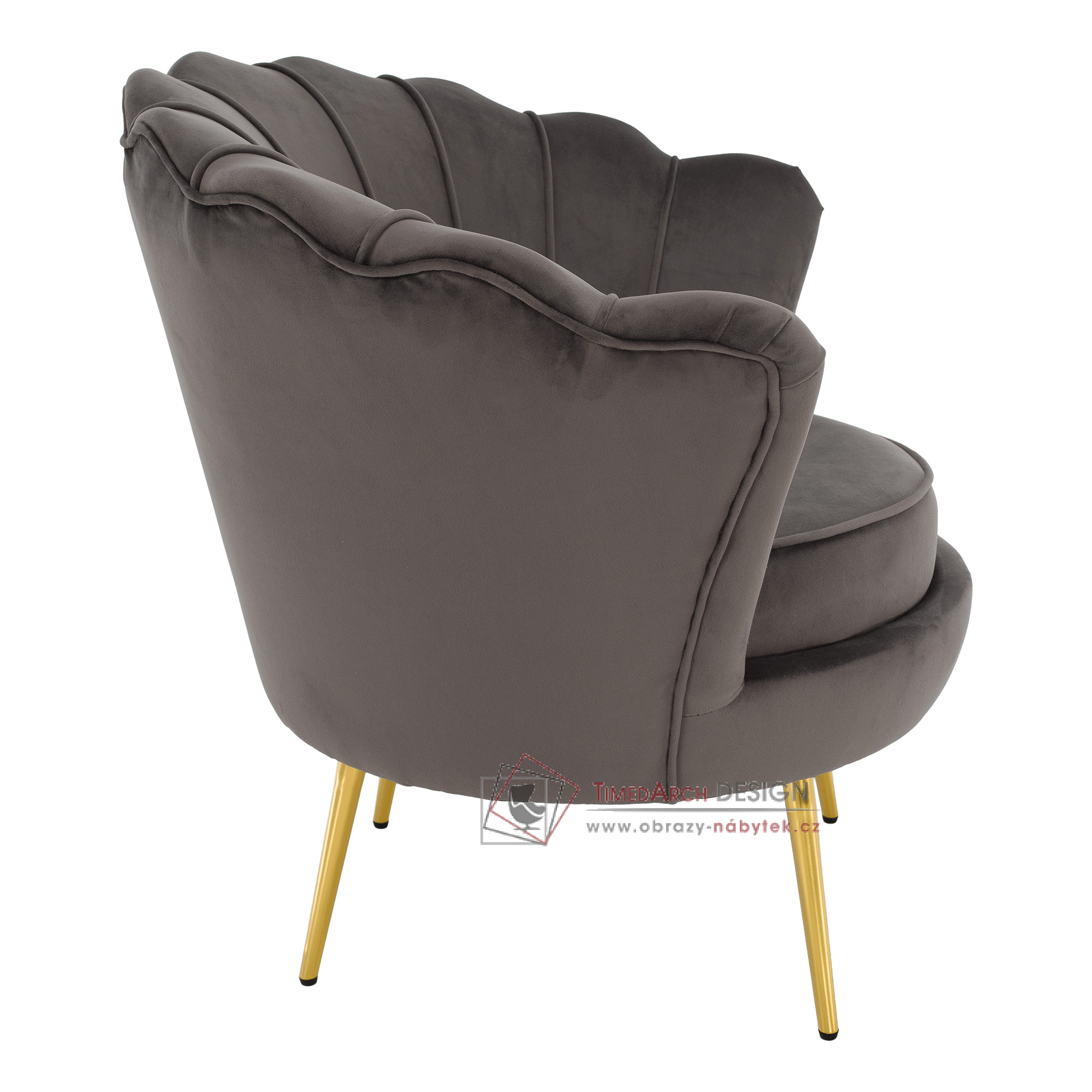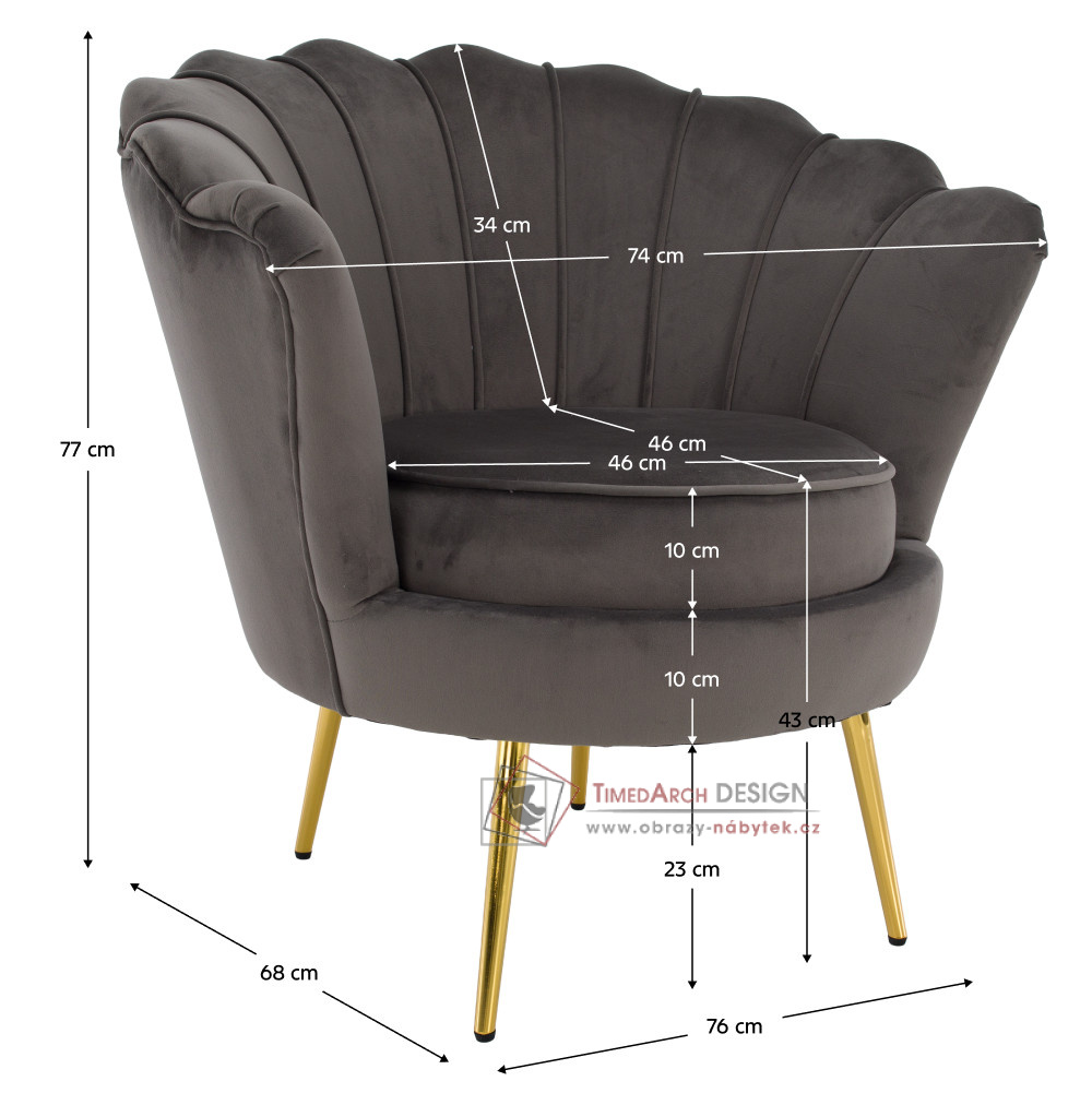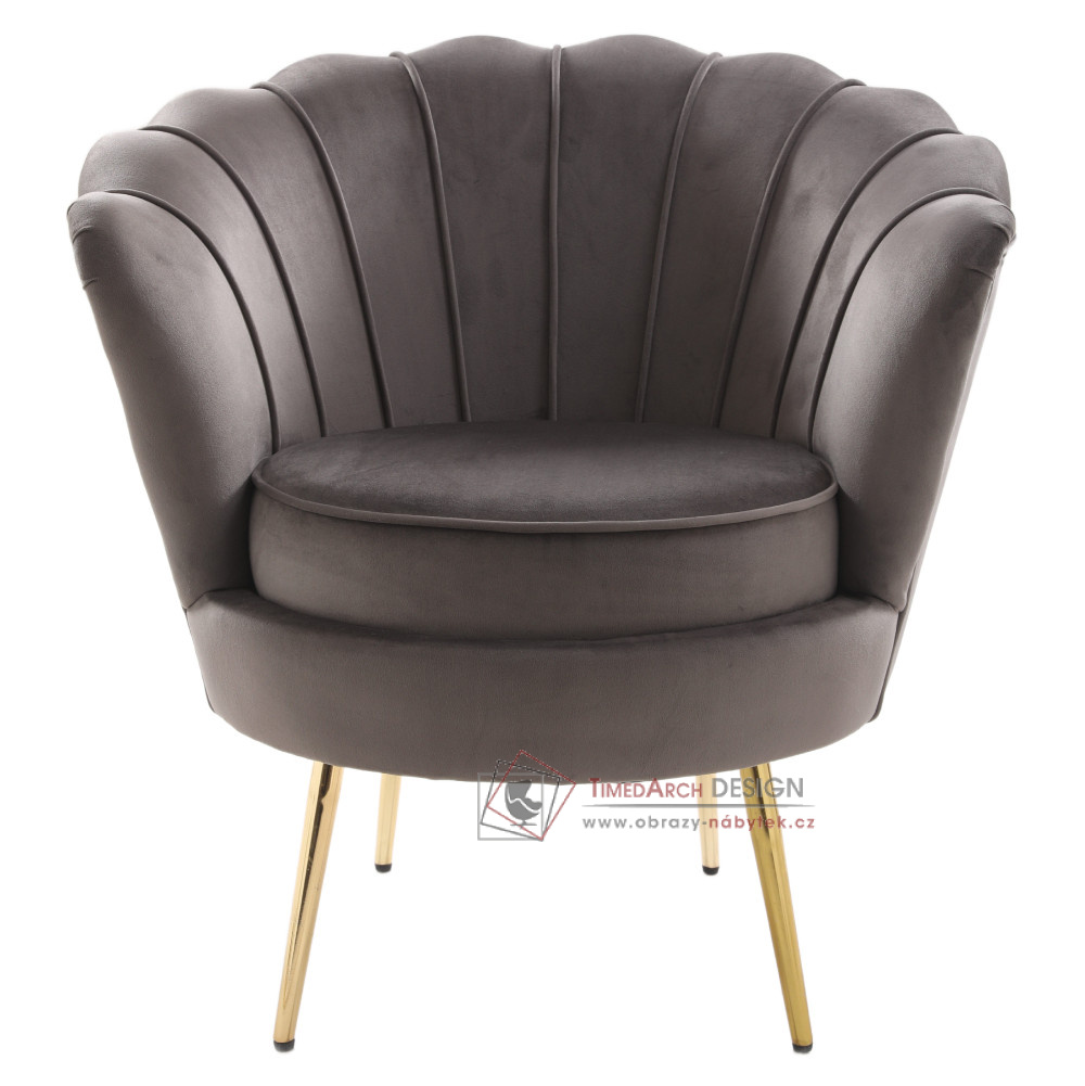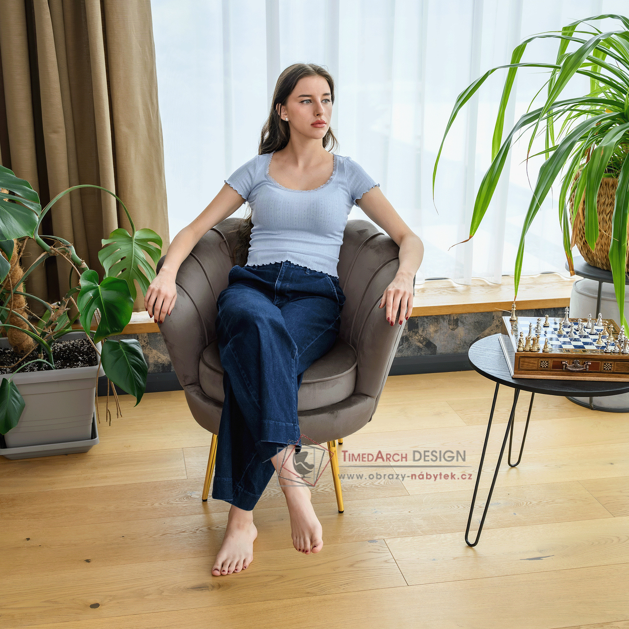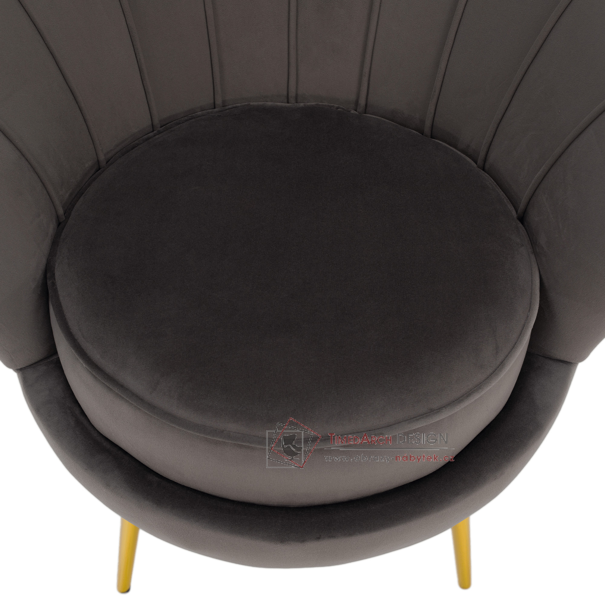 Zaujme na první pohled díky šedohnědé Velvet látce v kombinaci s kovovými nohama v provedení gold chrom zlatá. Křeslo v sobě nese ducha glamour a Art-deco stylu. Dekorativní prošívané opěradlo a pohodlné kulaté sedátko zaručují komfort i vizuální požitek. Štíhlé nožičky nejen opticky odlehčují celkový vzhled, ale zajišťují také potřebnou stabilitu. NOBLEO vynikne nejen v obývacím pokoji, ložnici či stylové jídelně, ale je ideální i do kanceláře, jednací místnosti, vstupní haly či lounge zóny. Skvěle doplní interiér a stane se důstojným reprezentantem.