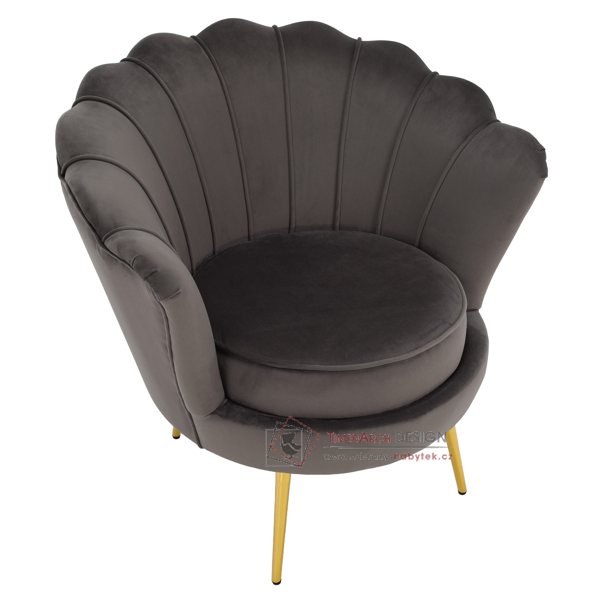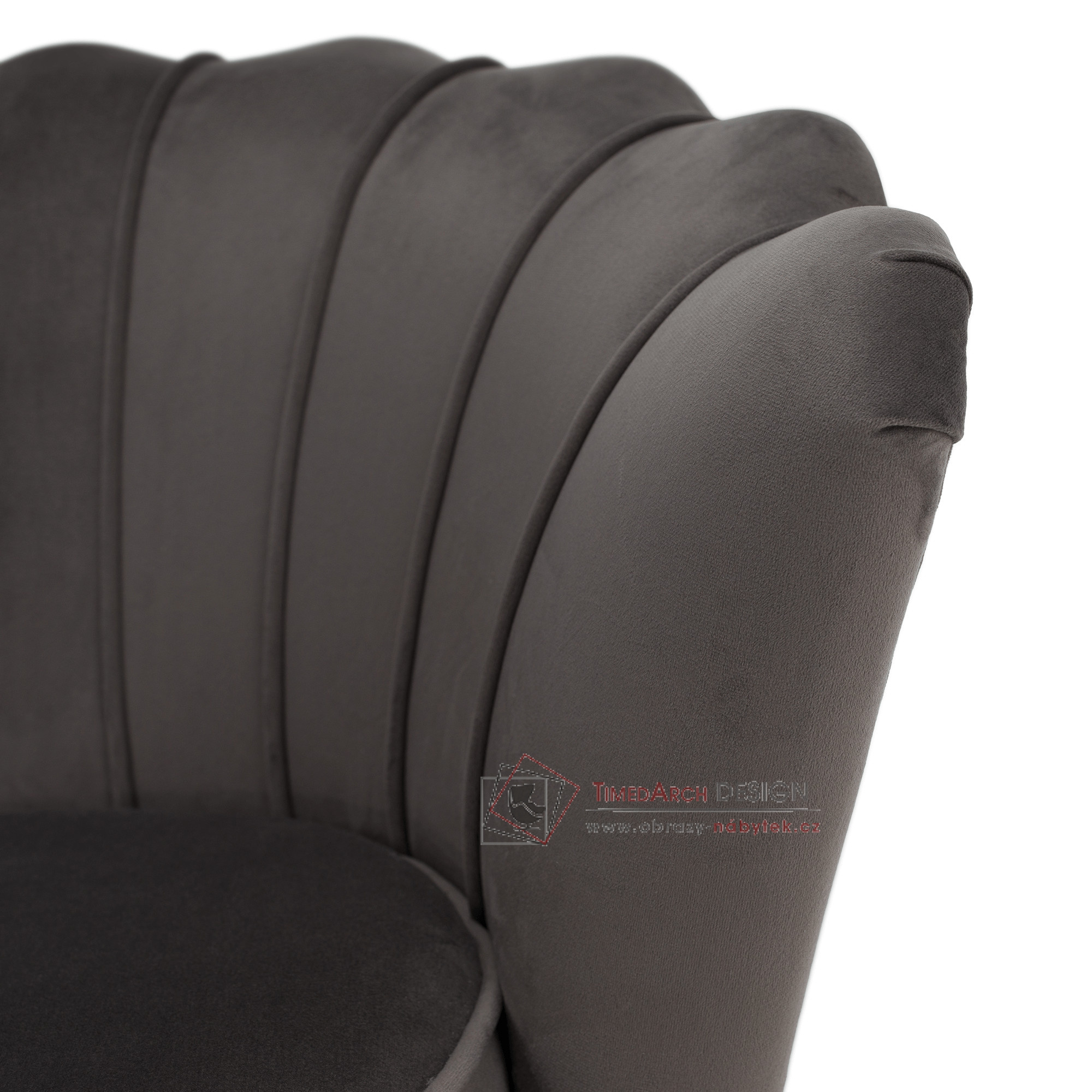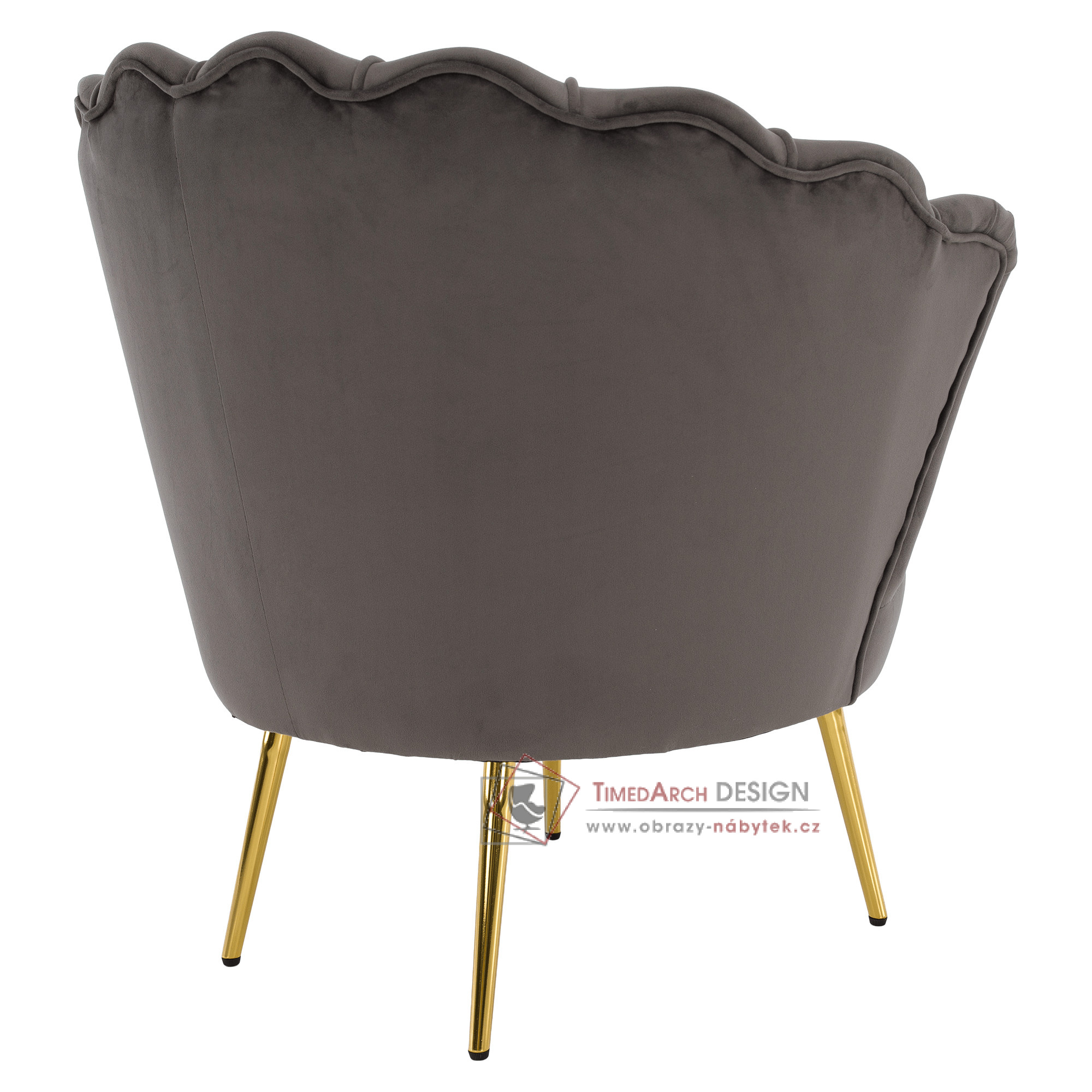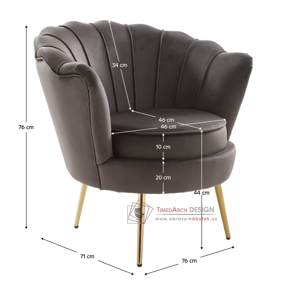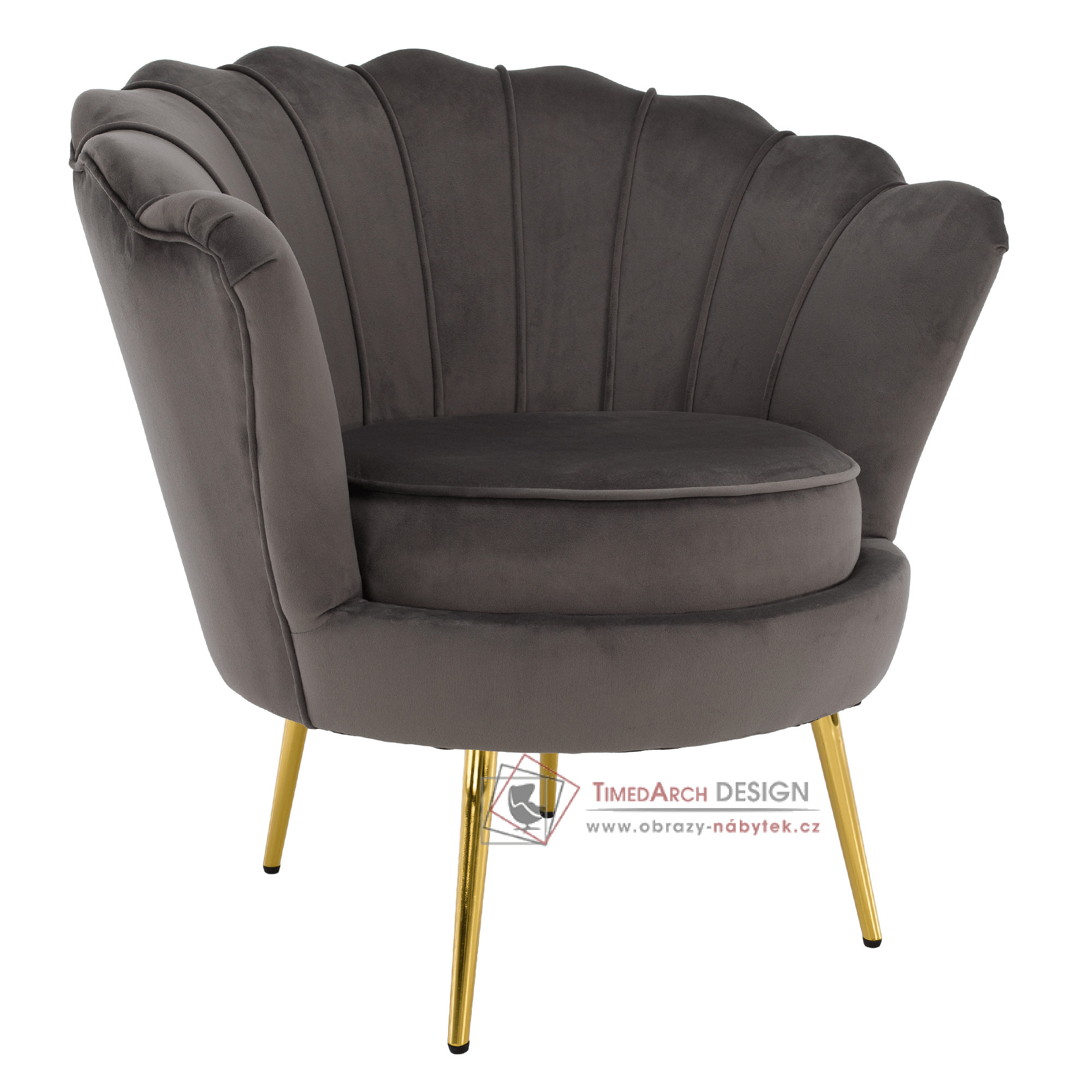 Zaujme na první pohled díky šedohnědé Velvet látce v kombinaci s kovovými nohama v provedení gold chrom zlatá. Křeslo v sobě nese ducha glamour a Art-deco stylu. Dekorativní prošívané opěradlo a pohodlné kulaté sedátko zaručují komfort i vizuální požitek. Štíhlé nožičky nejen opticky odlehčují celkový vzhled, ale zajišťují také potřebnou stabilitu. NOBLEO vynikne nejen v obývacím pokoji, ložnici či stylové jídelně, ale je ideální i do kanceláře, jednací místnosti, vstupní haly či lounge zóny. Skvěle doplní interiér a stane se důstojným reprezentantem.