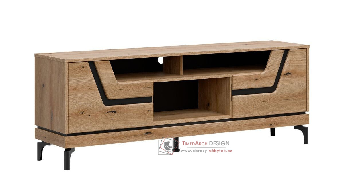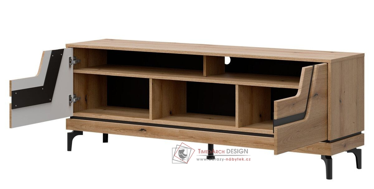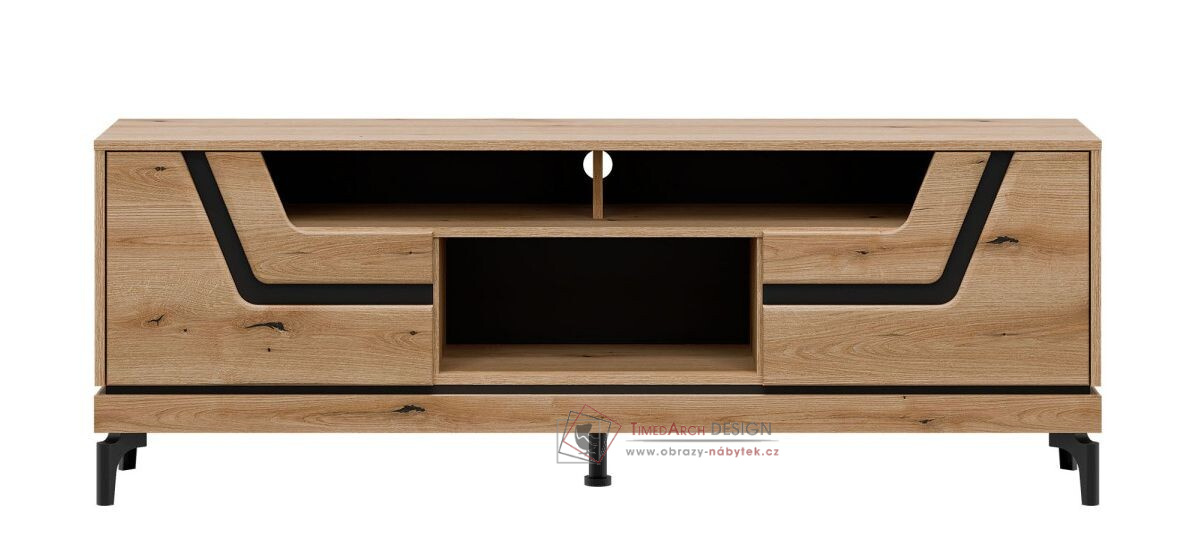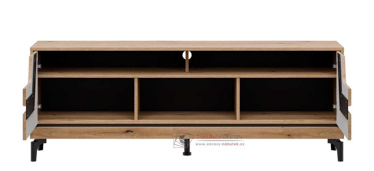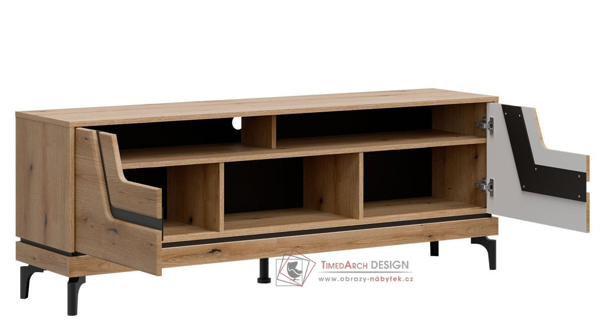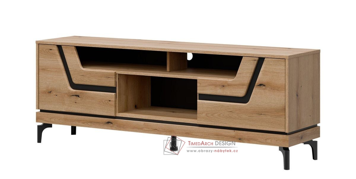 Představujeme elegantní a funkční televizní skříňku z kolekce Kris, která se perfektně hodí do vašeho obývacího pokoje. Model KS01 v barvě dub evoke / černá zaujme svým minimalistickým, moderním designem, který se bez problémů hodí do různých interiérových stylů. Díky své pevné konstrukci a vysoce kvalitním materiálům tento kus nábytku zaručuje nejen estetickou přitažlivost, ale také odolnost a pohodlí po mnoho let. Dvě prostorné boční skříňky a otevřená police uprostřed poskytují dostatek prostoru pro uložení různých elektronických zařízení, knih a dekorací. Praktické kabelové vývody navíc usnadňují správu kabelů.