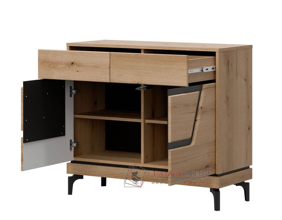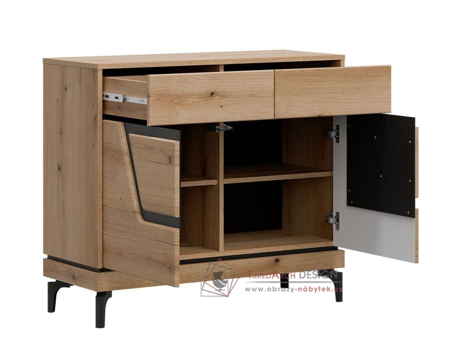 Komoda série Kris, model KS02, zaujme svou kombinací elegance a funkčnosti. Tato komoda je perfektním doplňkem vašeho obytného prostoru, nejen praktickým, ale i stylovým. Prostorné zásuvky a otevřená police poskytují dostatek prostoru pro uložení oblečení, doplňků a dalších drobností. Elegantní úchytky navíc dodávají komodě moderní vzhled a usnadňují každodenní používání. Barevné schéma dub evoke / černá dodává komodě jedinečný charakter, který se bez problémů hodí do různých interiérových designů.