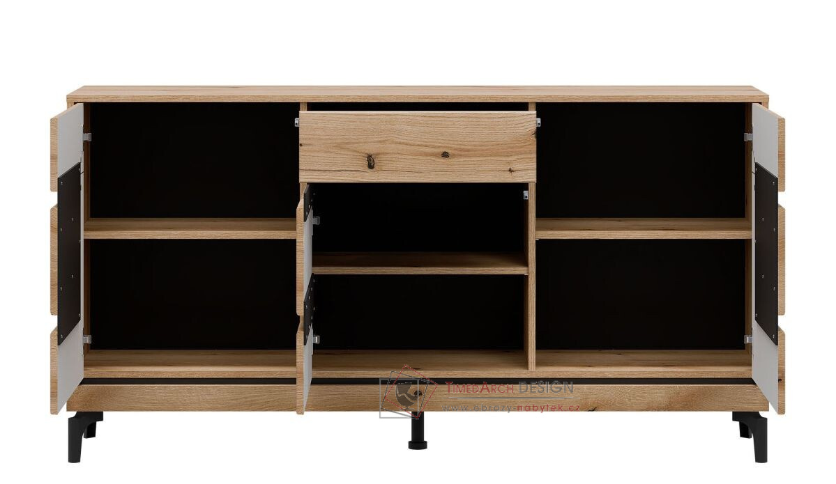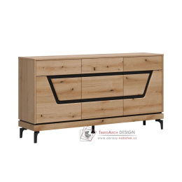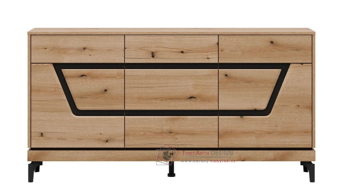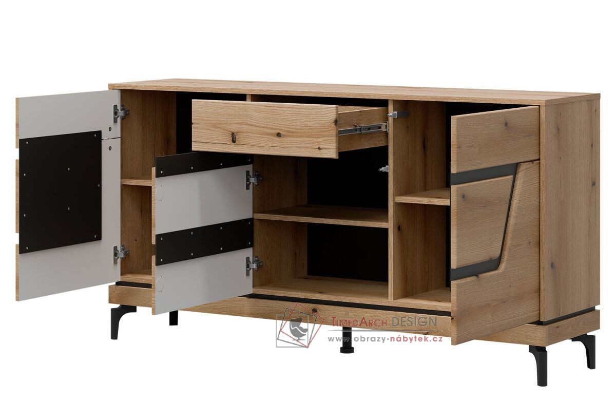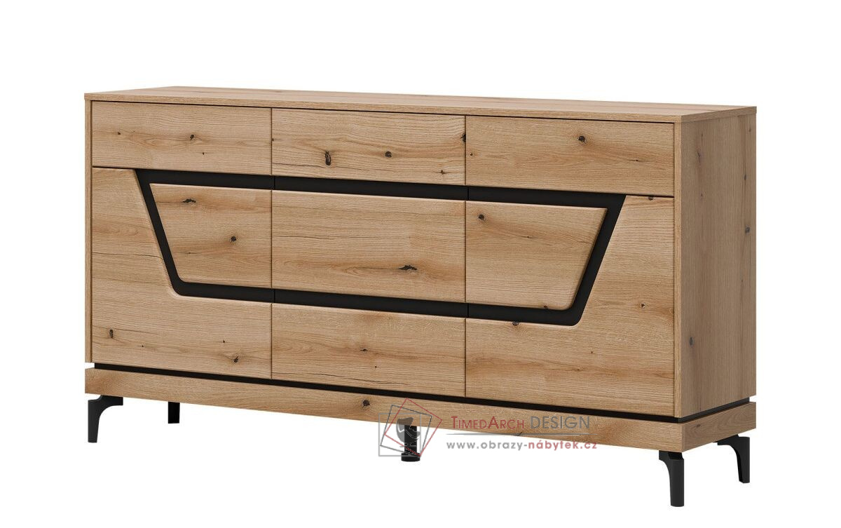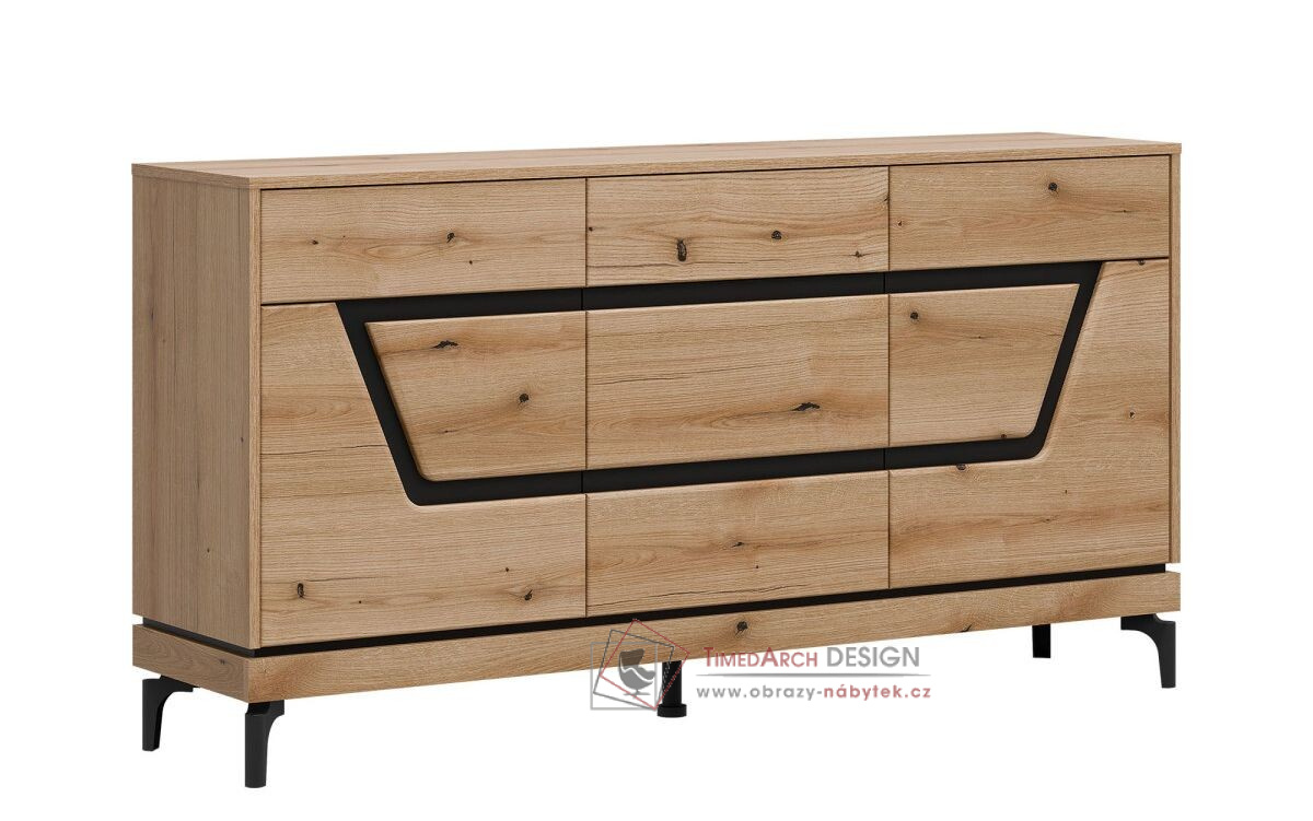 Komoda Kris KS03 kombinuje funkčnost s vytříbeným stylem. Tato komoda vyzařuje eleganci, díky čemuž se stane nepostradatelným doplňkem vašeho interiéru. Barevné schéma dub evoke / černá dodává komodě jedinečný vzhled. Vyberte si komodu KS03 z kolekce Kris a dodáte svému interiéru nejen funkčnost, ale i stylový nádech.