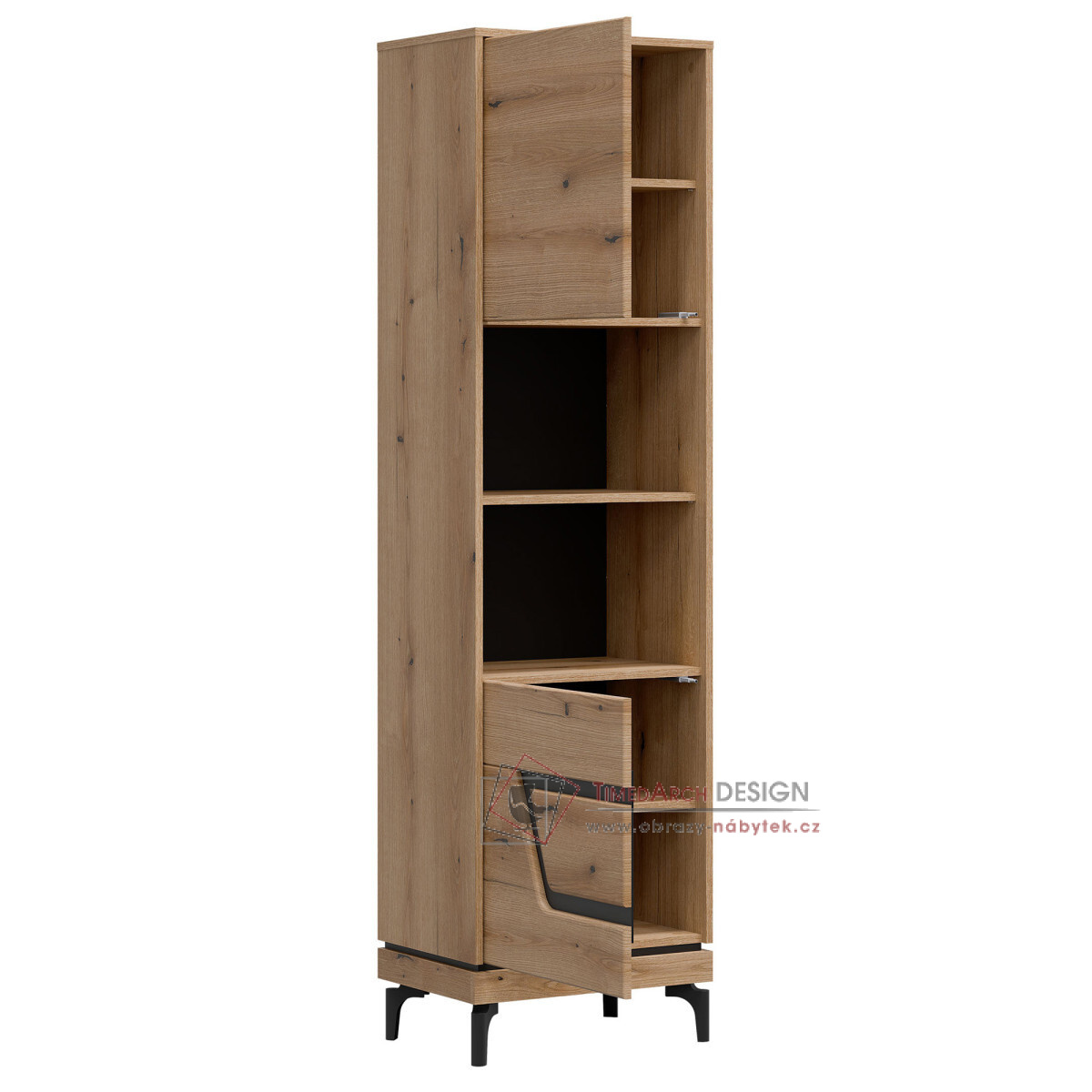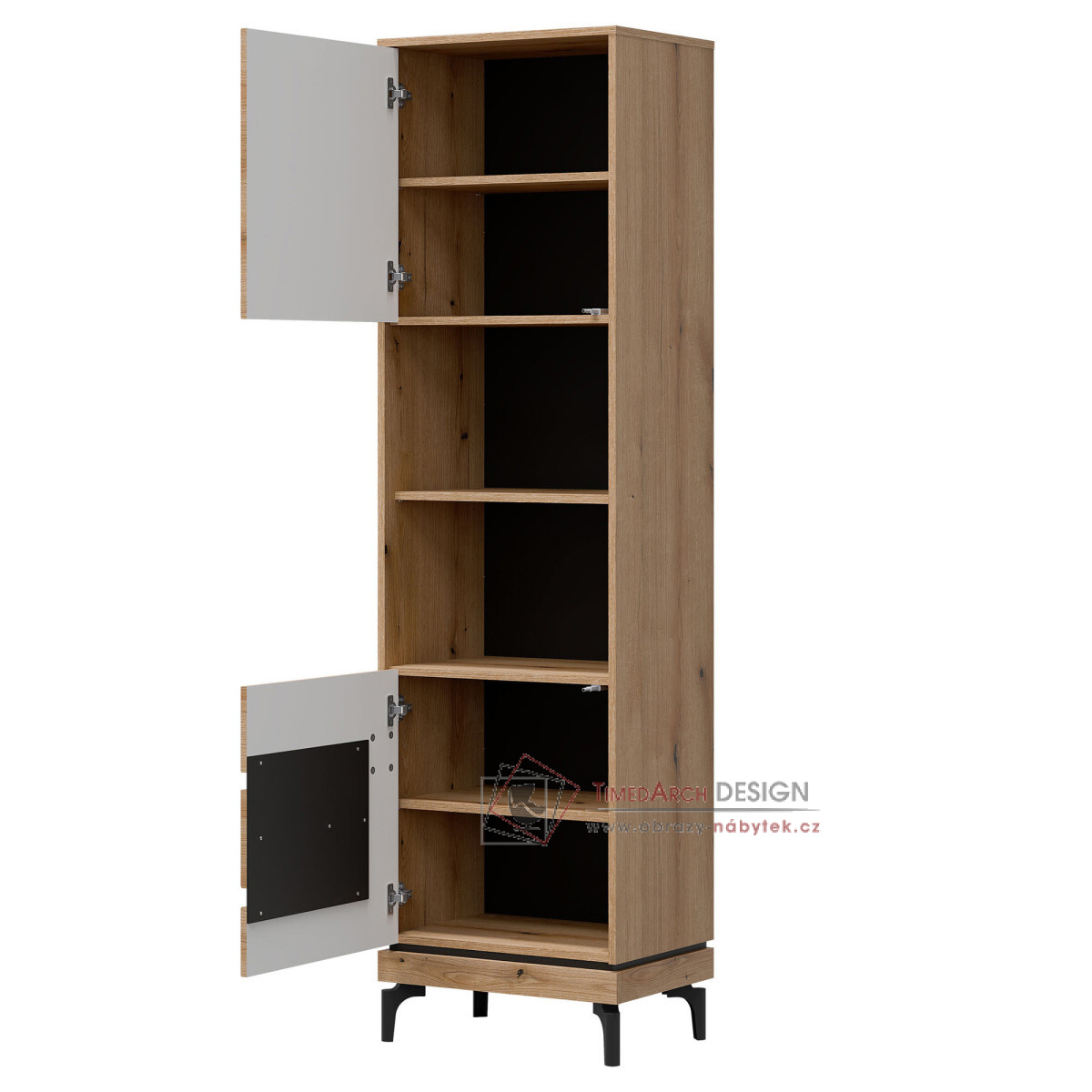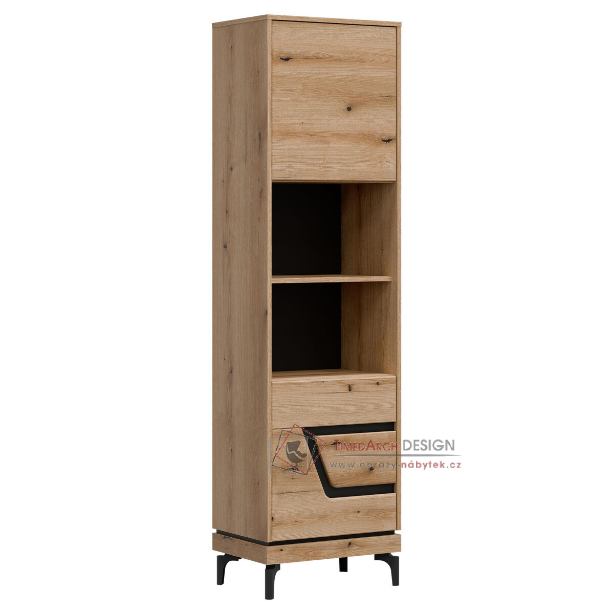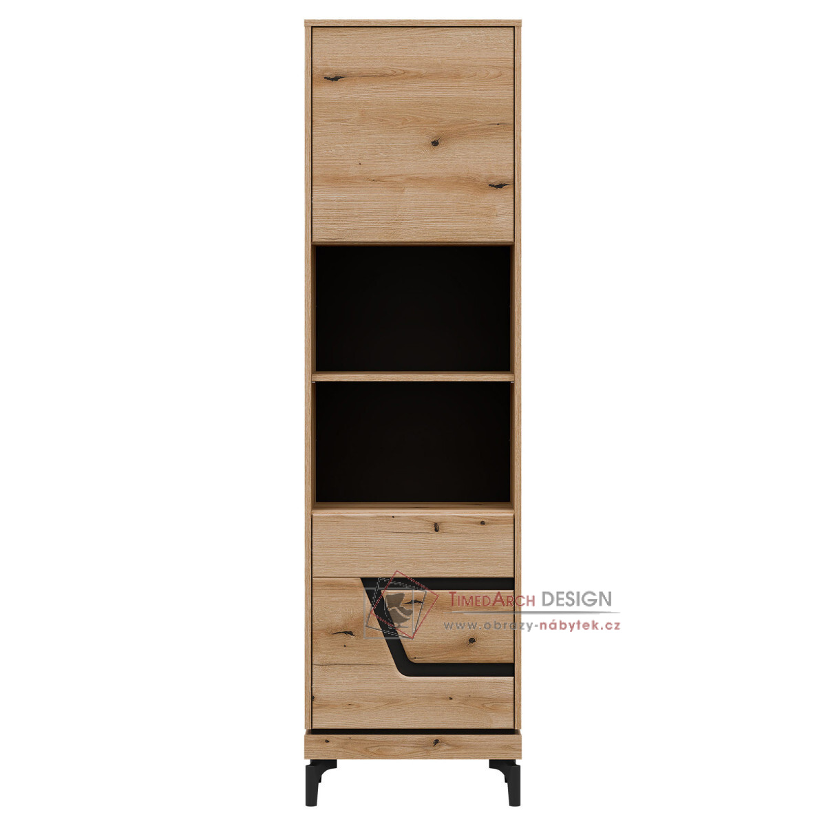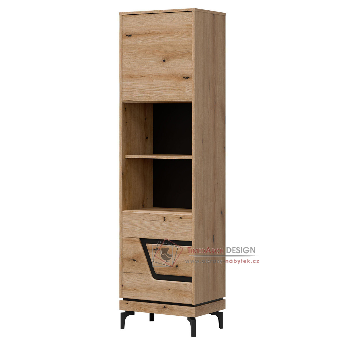 KRIS KS08, regál 2-dveřový - pravý, dub evoke / černá