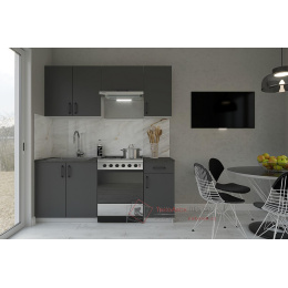 Korpusy skříněk jsou vyrobené z kvalitního lamina v barevném provedení grafit, dvířka a čela zásuvek také v barevném provedení grafit.