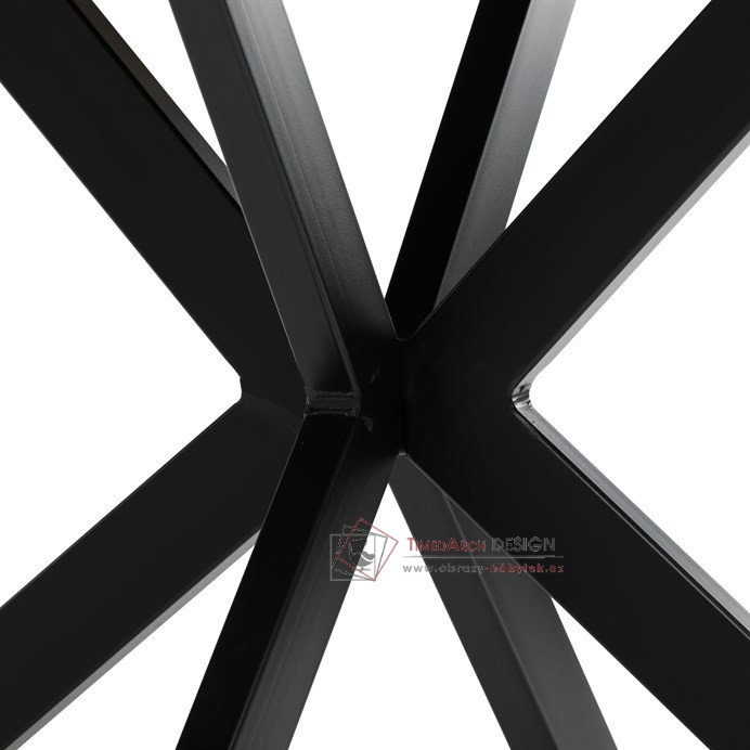 Deska stolu je vyrobena z MDF materiálu s tloušťkou optimalizovanou pro odolnost a stabilitu, opatřená ABS hranou, která chrání okraje před poškozením a zajišťuje dlouhou životnost. Kovová podnož je tvořena čtyřmi širokými nohami uspořádanými do kříže, což zajišťuje vysokou pevnost a stabilitu celé konstrukce, přičemž povrch nohou je upraven práškovým lakem pro zvýšení odolnosti proti korozi a mechanickému opotřebení. Praktickou vlastností jsou rektifikační nohy umožňující vyrovnání stolu na nerovném povrchu, což zvyšuje komfort používání a zabraňuje kývání. Kulatý tvar desky podporuje rovnoměrné rozložení prostoru pro sezení a usnadňuje komunikaci mezi uživateli, což ocení zejména v jídelních prostorách. Stůl je vhodný pro domácnosti i komerční provozy, kde je kladen důraz na kombinaci estetického vzhledu a funkčnosti. Rozměry 120 cm v průměru a výška 75 cm poskytují dostatek prostoru pro pohodlné stolování, přičemž nosnost konstrukce odpovídá běžným požadavkům na jídelní nábytek.