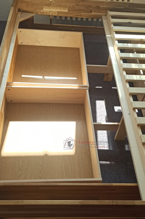Postel L602 je vyrobená z dubového masivu s povrchovou úpravou vodním lakem.