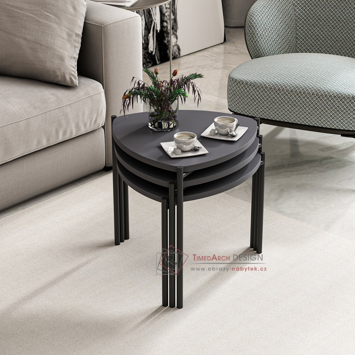 Naše vkládací stolky jsou k dispozici v úžasné antracitové barvě, která dodá každé místnosti nádech sofistikovanosti. Ať už je umístíte do obývacího pokoje, ložnice nebo kanceláře, tyto stolky bez námahy pozvednou váš domov.