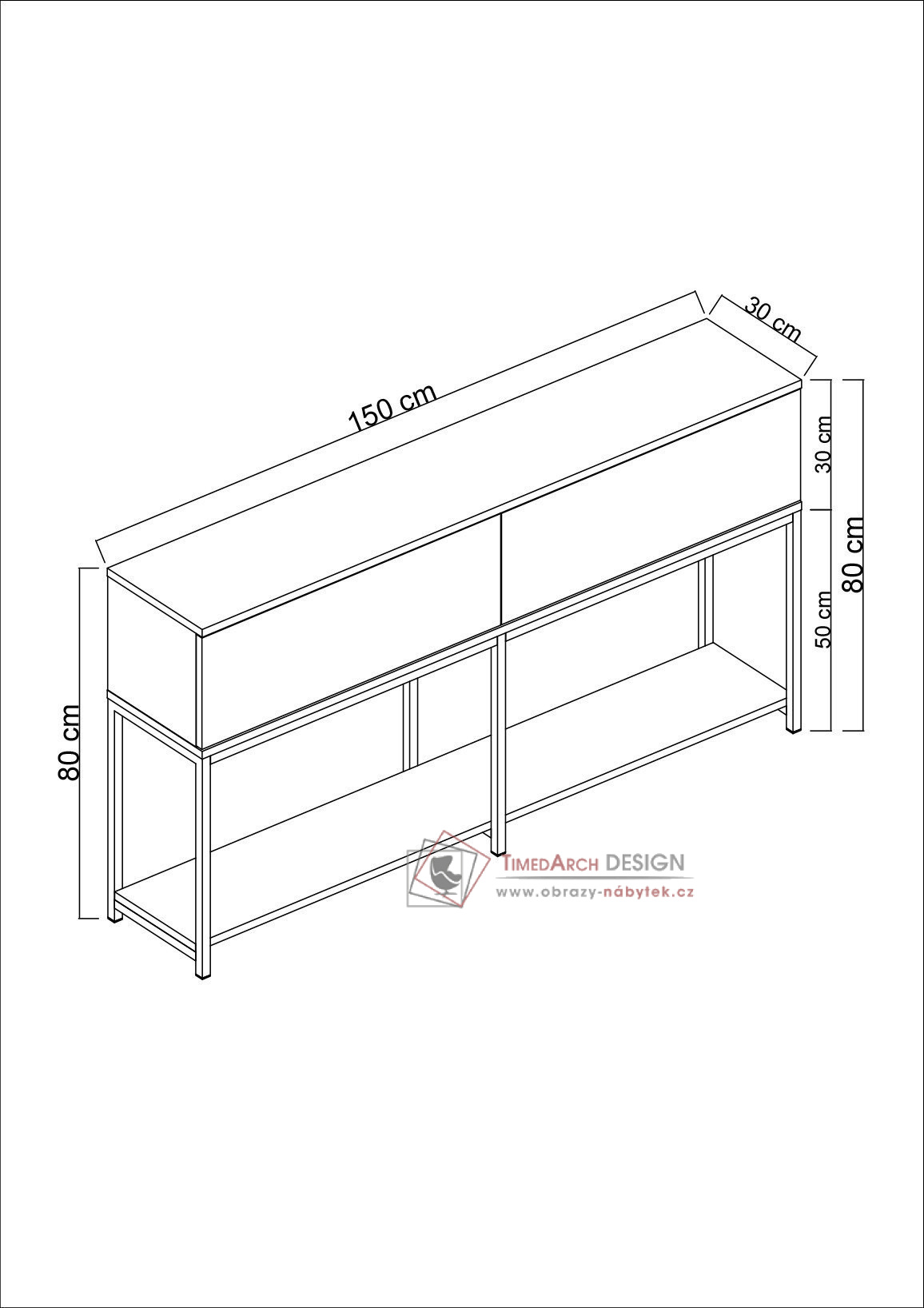 S šířkou 150 cm, výškou 80 cm a hloubkou 30 cm nabízí dostatek prostoru k vystavení vašich cenných věcí nebo k uspořádání nezbytností. Díky svému všestrannému designu je vhodný do různých prostředí, ať už je to váš obývací pokoj, chodba nebo dokonce ložnice. Popusťte uzdu své kreativitě a proměňte jakýkoli prostor v oázu elegance.