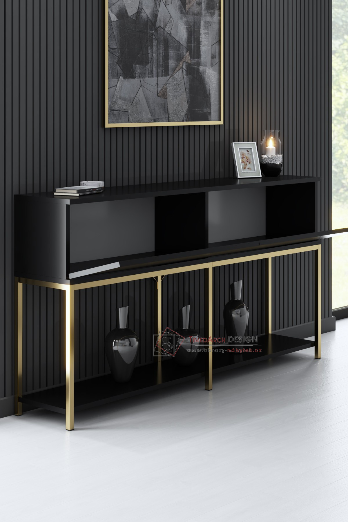 Představujeme úžasný konzolový stolek, perfektní doplněk každého moderního domova. Tento kus nábytku není jen kusem nábytku, ale ztělesněním stylu a sofistikovanosti. Díky svému elegantnímu designu a bezchybnému řemeslnému zpracování jistě ohromí vaše hosty a pozvedne celkovou estetiku vašeho obytného prostoru.