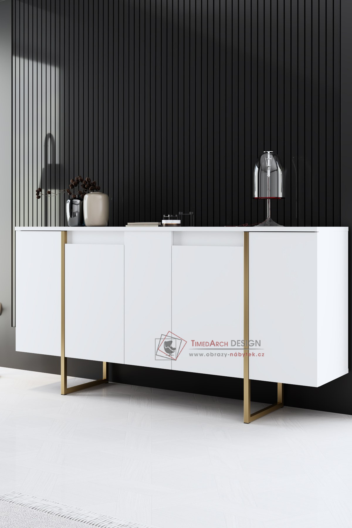 Vkročte do světa opulentnosti a vznešenosti s naší komodou, pečlivě vyrobenou k dokonalosti. Kombinace bílé a zlaté barvy vytváří fascinující vizuální dojem, který okamžitě upoutá pozornost. Tato komoda je více než jen kus nábytku; je to vyjádření vašeho vytříbeného vkusu a náročné osobnosti.