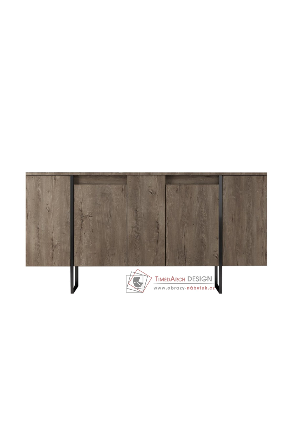 Kombinace barvy ořechu a černé vytváří výrazný kontrast, který dodá vašemu prostoru lesk. Bohatá povrchová úprava z ořechového dřeva přináší teplo a hloubku, zatímco elegantní černé kovové nohy poskytují moderní a originální vzhled. Tato komoda je skutečným kouskem, který vaše hosty ohromí.