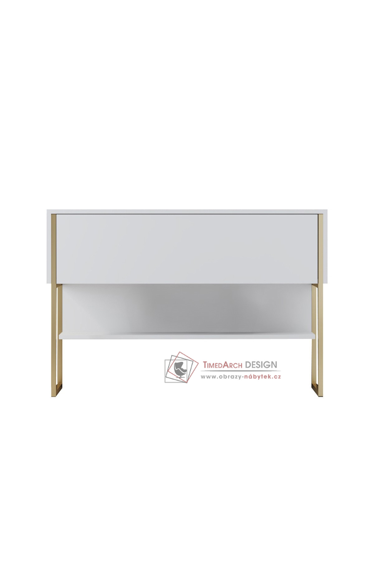 Kombinace zlaté a bílé barvy vytváří nadčasový a elegantní vzhled, který okamžitě pozvedne váš prostor. Elegantní design a kovové nohy dodávají tomuto klasickému kusu nábytku nádech modernity, díky čemuž je perfektním doplňkem každého moderního domova.