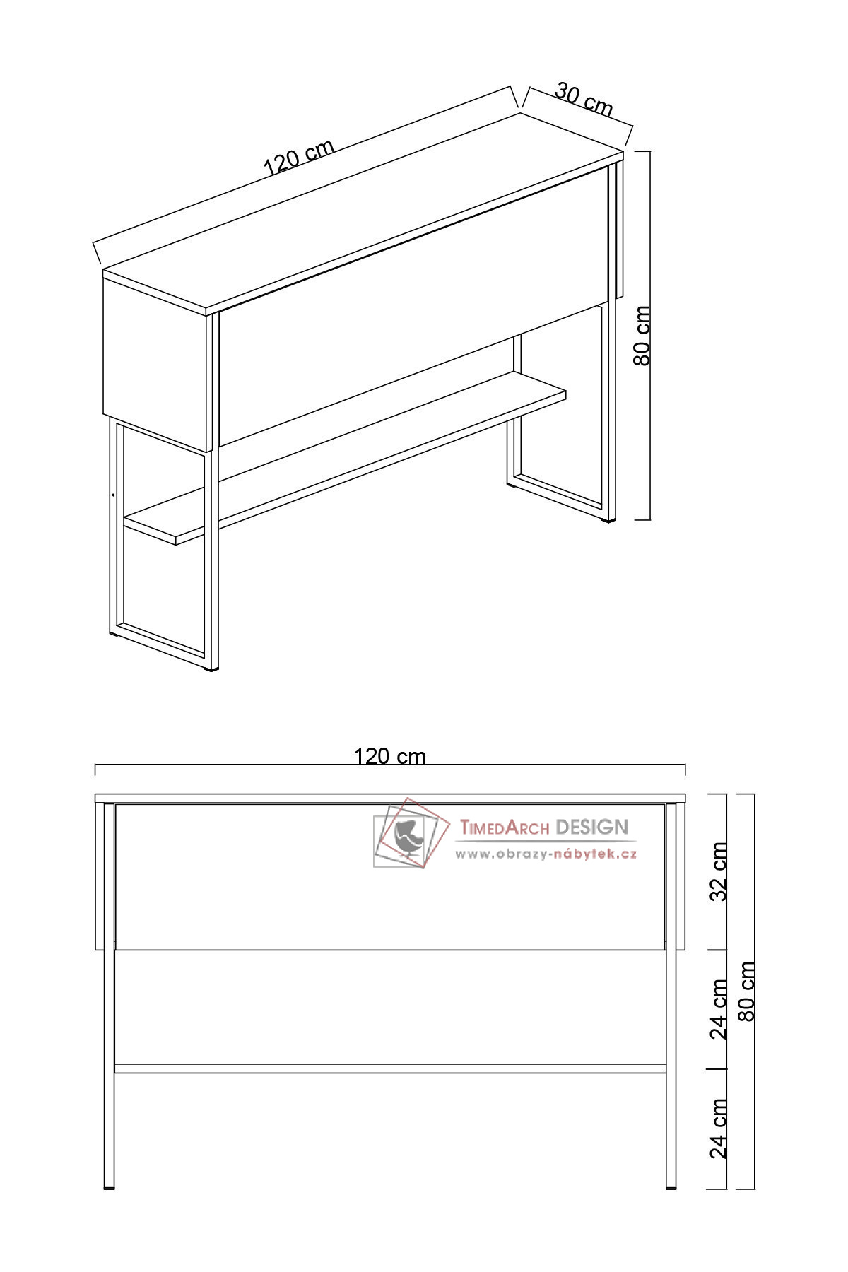 S rozměry 120 cm na šířku, 80 cm na výšku a 30 cm na hloubku nabízí konzolový stolek dostatek úložného prostoru pro všechny vaše nezbytnosti. Ať už ji používáte v ložnici, obývacím pokoji nebo na chodbě, tento konzolový stolek vám pomůže udržet si pořádek a bez nepořádku.