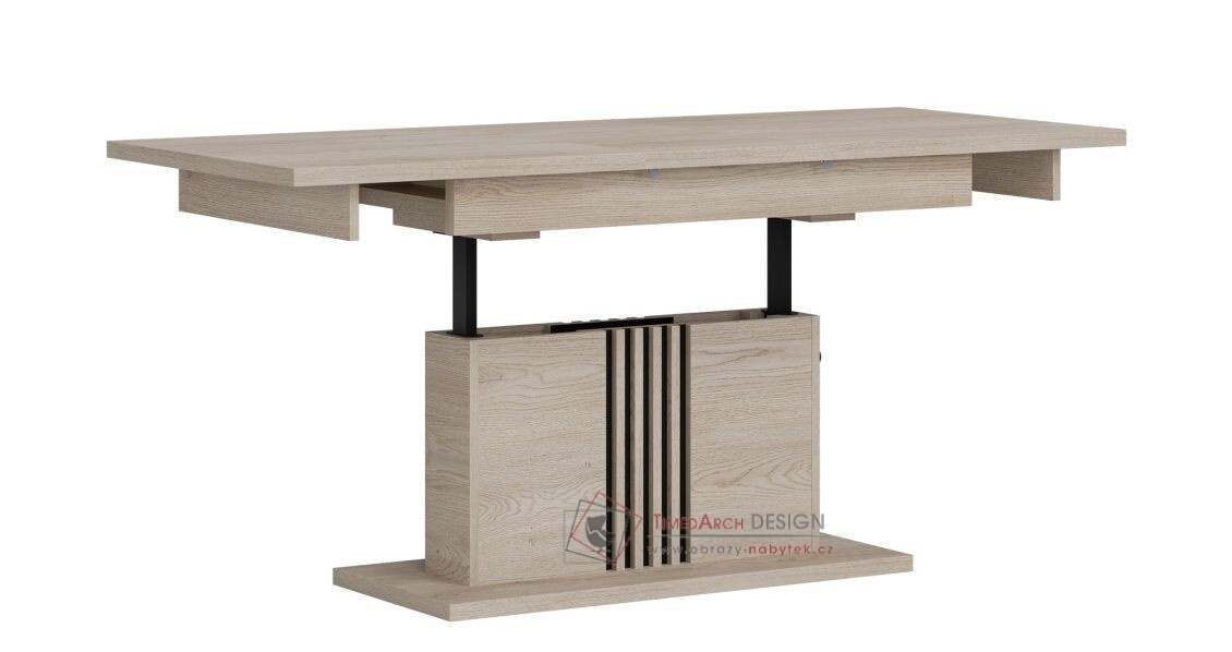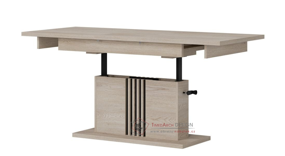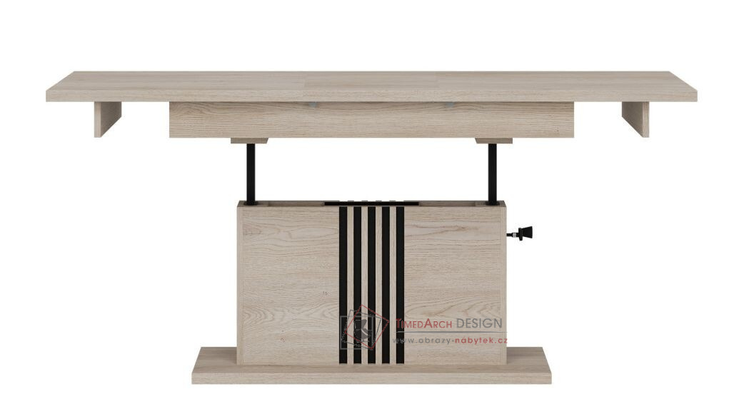 Rozkládací konferenční stolek LA13 je perfektním řešením pro ty, kteří si cení funkčnosti a stylu v malých prostorech. Díky inovativnímu systému nastavení výšky lze stůl snadno přizpůsobit různým potřebám a proměnit jej z nízkého konferenčního stolku ve vyšší jídelní stůl. Rozkládací mechanismus poskytuje další prostor, ideální jak pro každodenní použití, tak pro větší setkání. Konferenční stolek LA13, který je k dispozici v elegantní povrchové úpravě cremona dub/černá, se bez problémů hodí do různých interiérových designů. Je vyroben z vysoce kvalitních materiálů, kombinuje odolnost s moderním designem a nabízí praktické a esteticky příjemné řešení pro jakýkoli prostor.