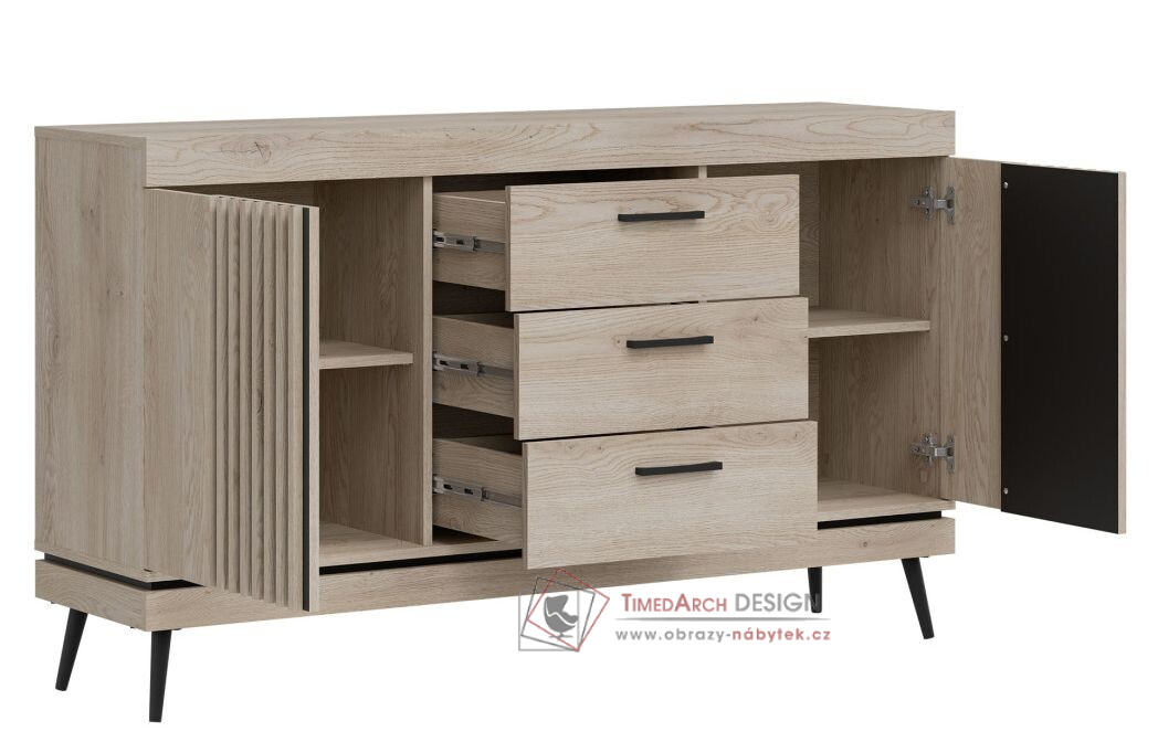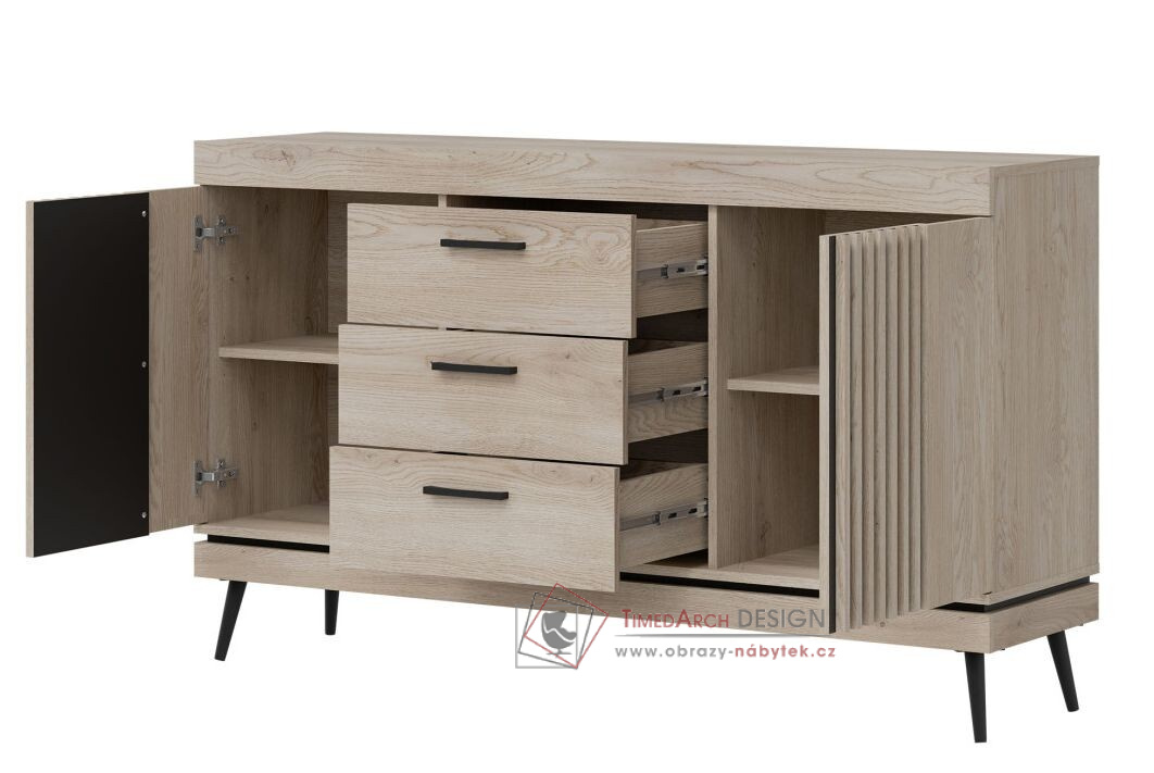 Komoda MI04 z kolekce MATI je stylová a funkční komoda do každého interiéru. Spojuje eleganci s praktičností. Je ideální do obývacího pokoje, ložnice nebo kanceláře a poskytuje vynikající úložné a organizační řešení. Vyznačuje se elegantním designem, velkou kapacitou, pevnou konstrukcí a moderní estetikou. S komodou MI04 si můžete bez námahy uspořádat prostor a zároveň vylepšit jeho estetiku.