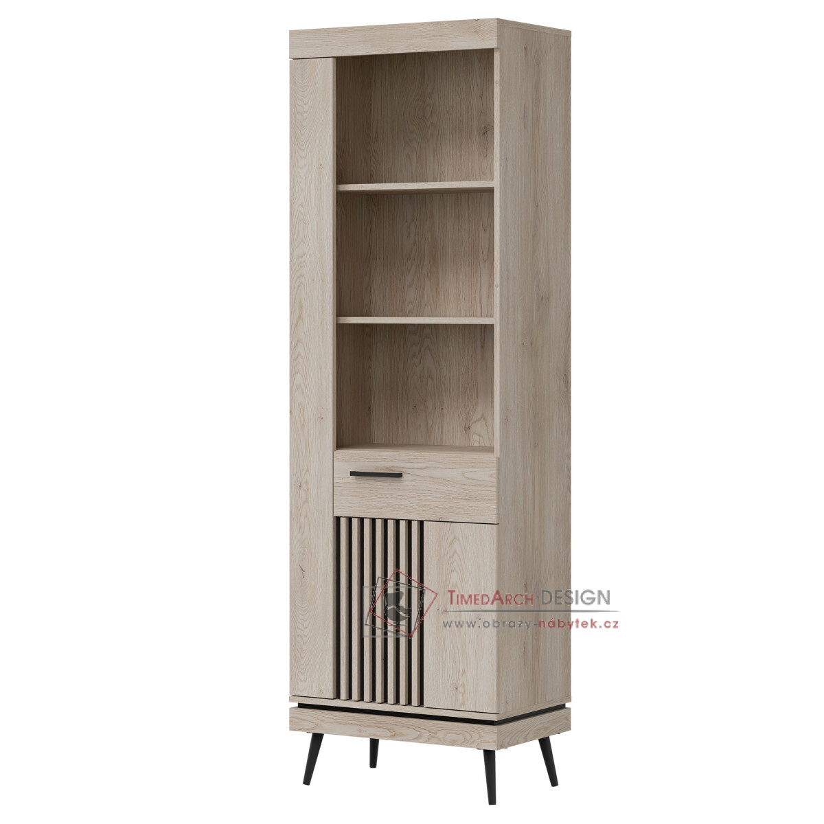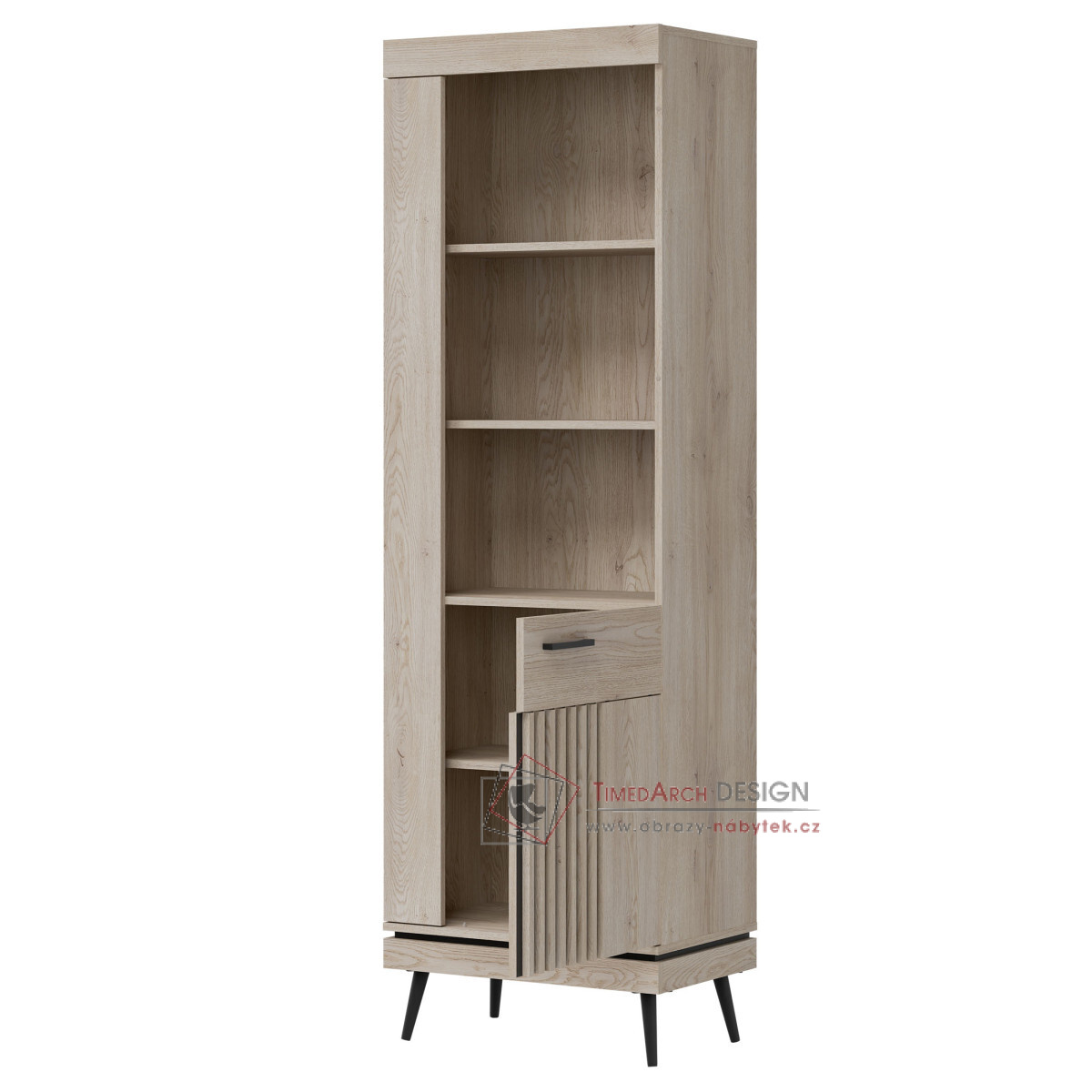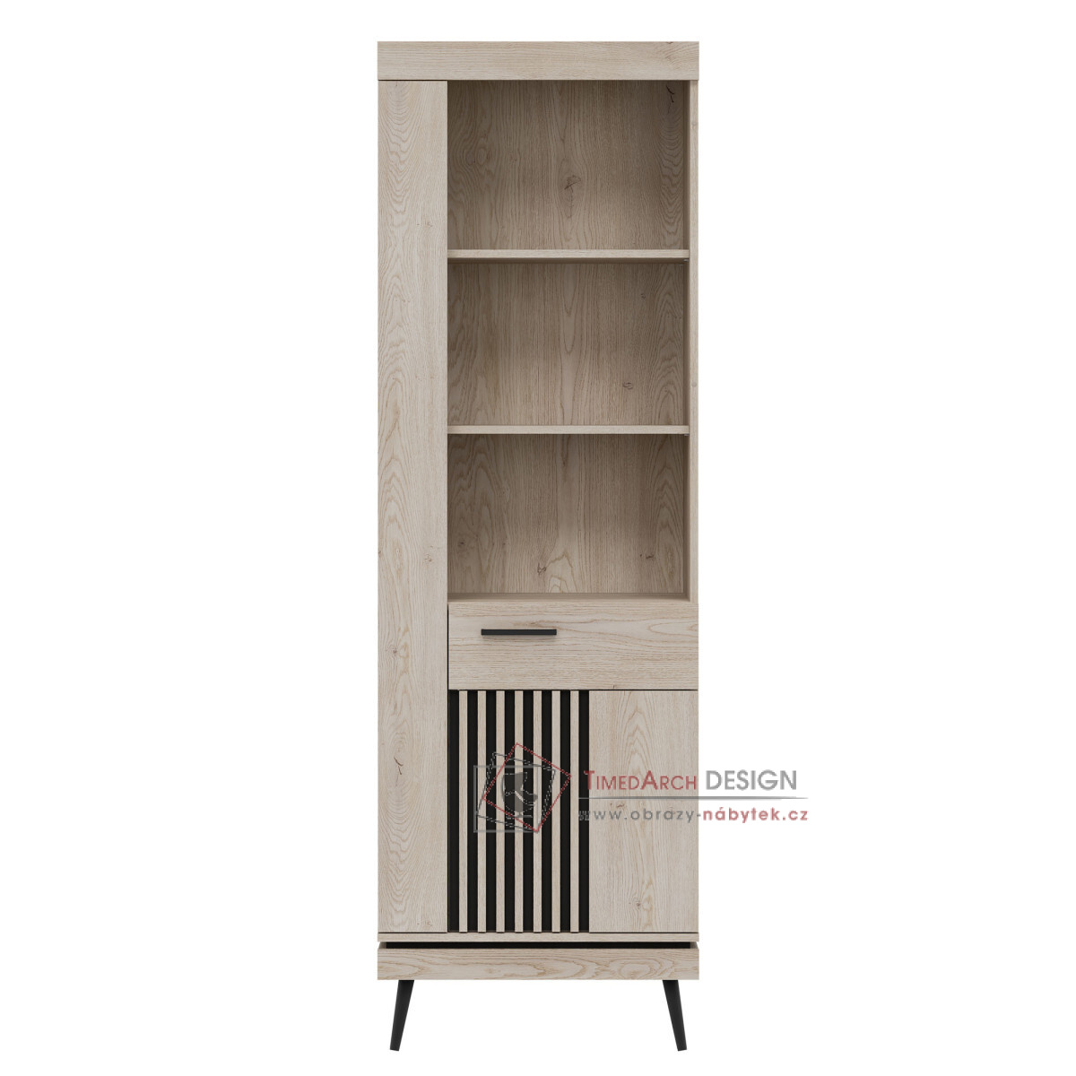 Regál MATI MI08 je elegantní a funkční kus nábytku vyrobený z vysoce kvalitní laminované desky v barvě dub cremona s černými akcenty. Měří 64 cm na šířku, 40 cm do hloubky a 198 cm do výšky. Je vybavena systémem tichého zavírání dveří, což zajišťuje pohodlné používání. Je ideální do obývacího pokoje, kanceláře nebo dětského pokoje a nabízí prostor pro uložení knih, dekorací a dalších předmětů.