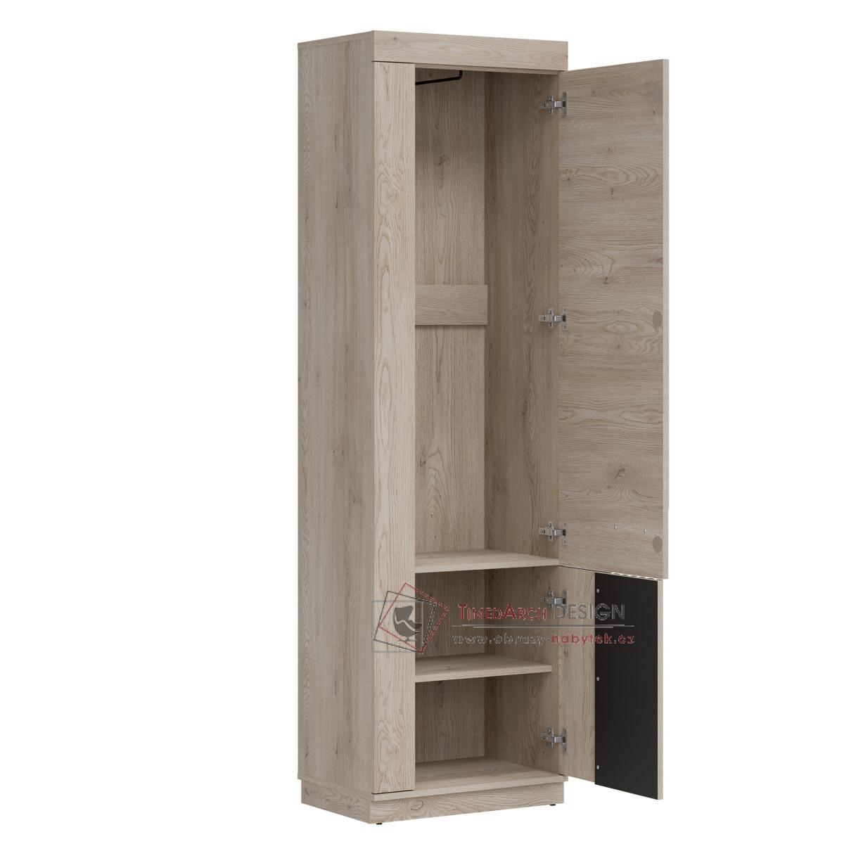 Skříň je univerzální - dveře lze dle potřeby umístit na pravou nebo levou stranu.