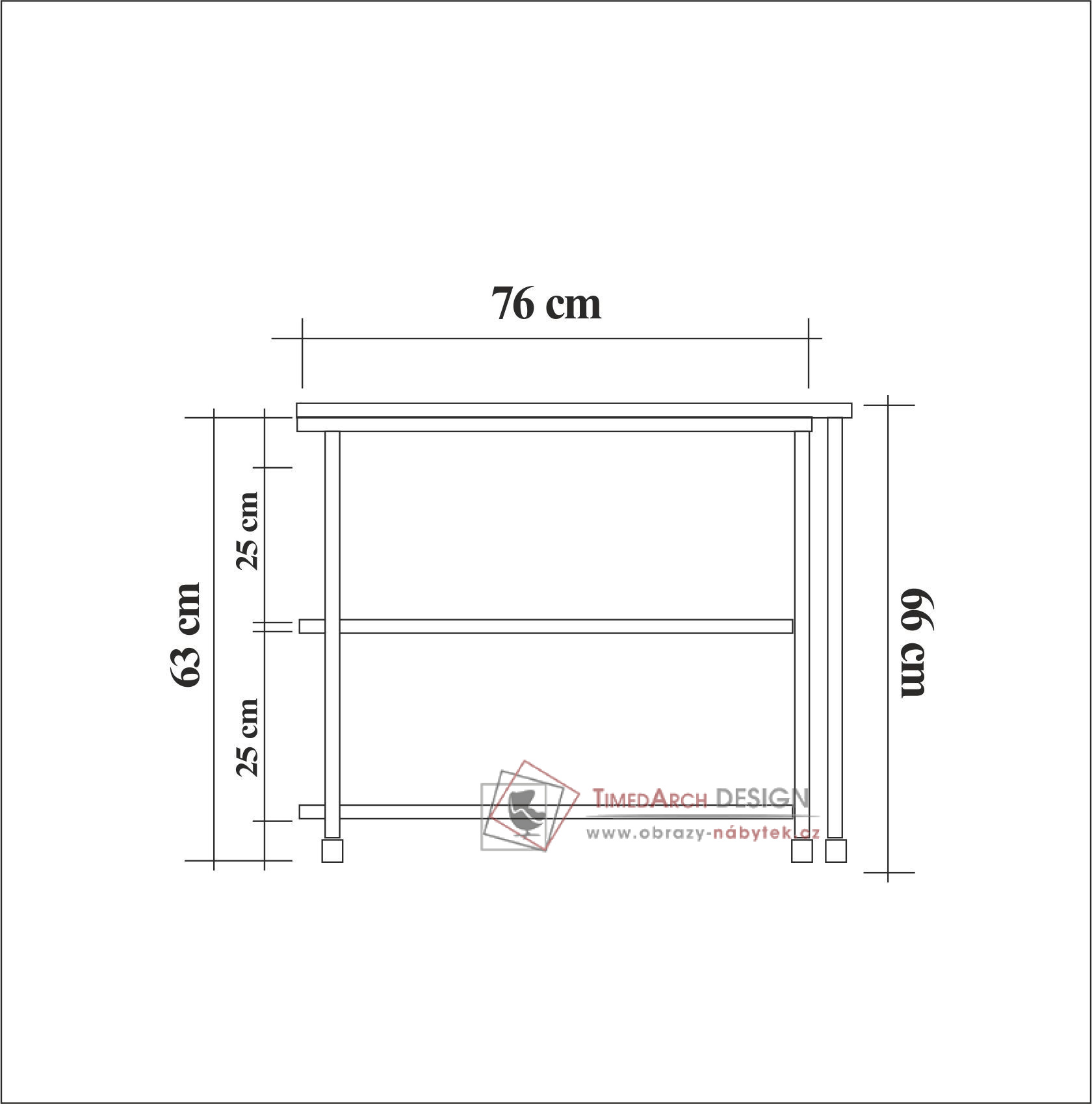 Tento odkládací stolek s prostornou horní plochou a další policí nabízí dostatek prostoru pro vystavení vašich oblíbených dekoračních předmětů, knih nebo dokonce malé rostliny. Výška police 25 cm a hloubka 30 cm poskytují dostatek prostoru pro všechny vaše úložné potřeby. Uspořádejte si své nezbytnosti stylově a udržujte svůj obytný prostor uklizený.